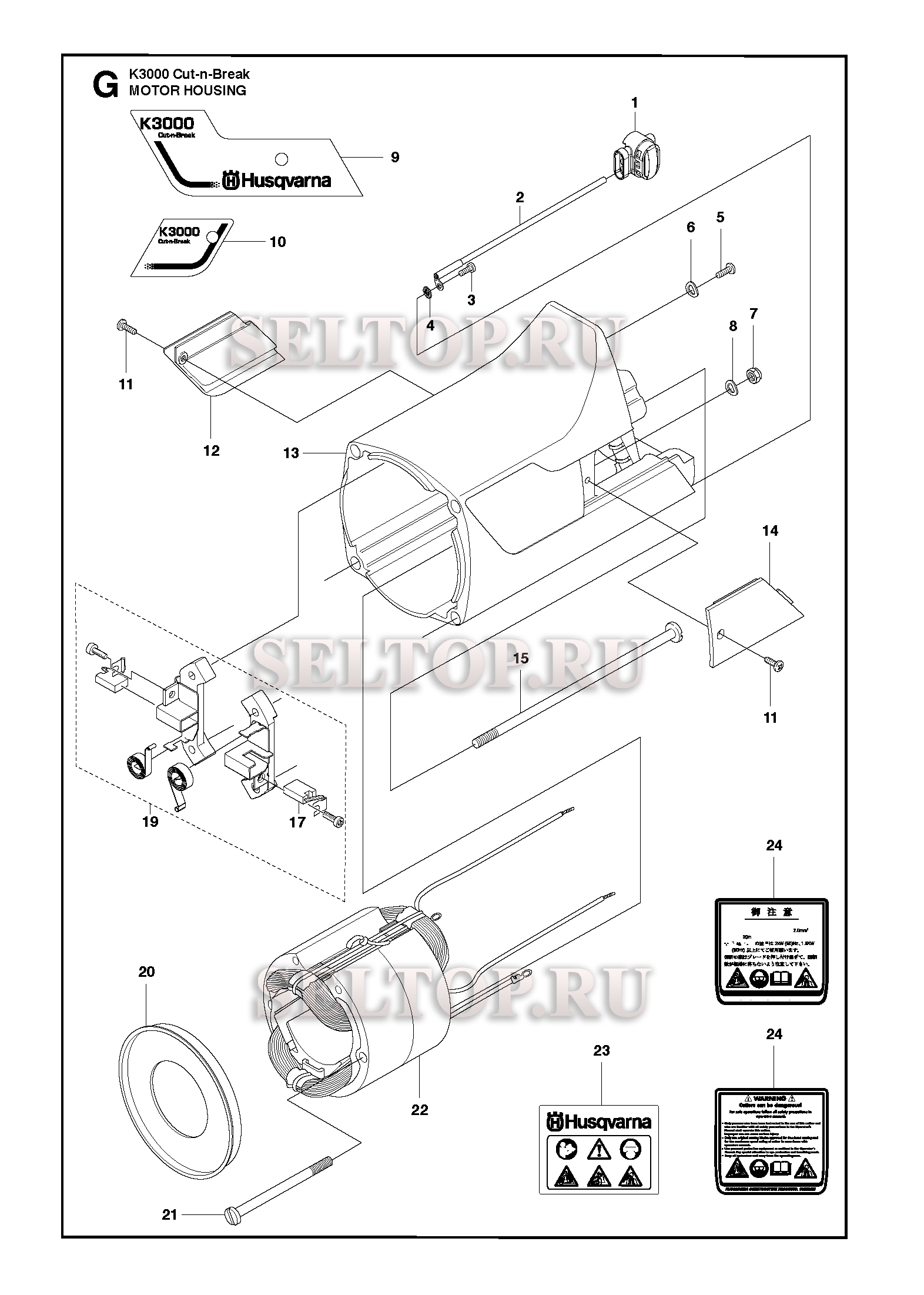 Корпус двигателя для резчика Husqvarna K3000 Cut-n-Break (с 2013-06), взрыв-схема: