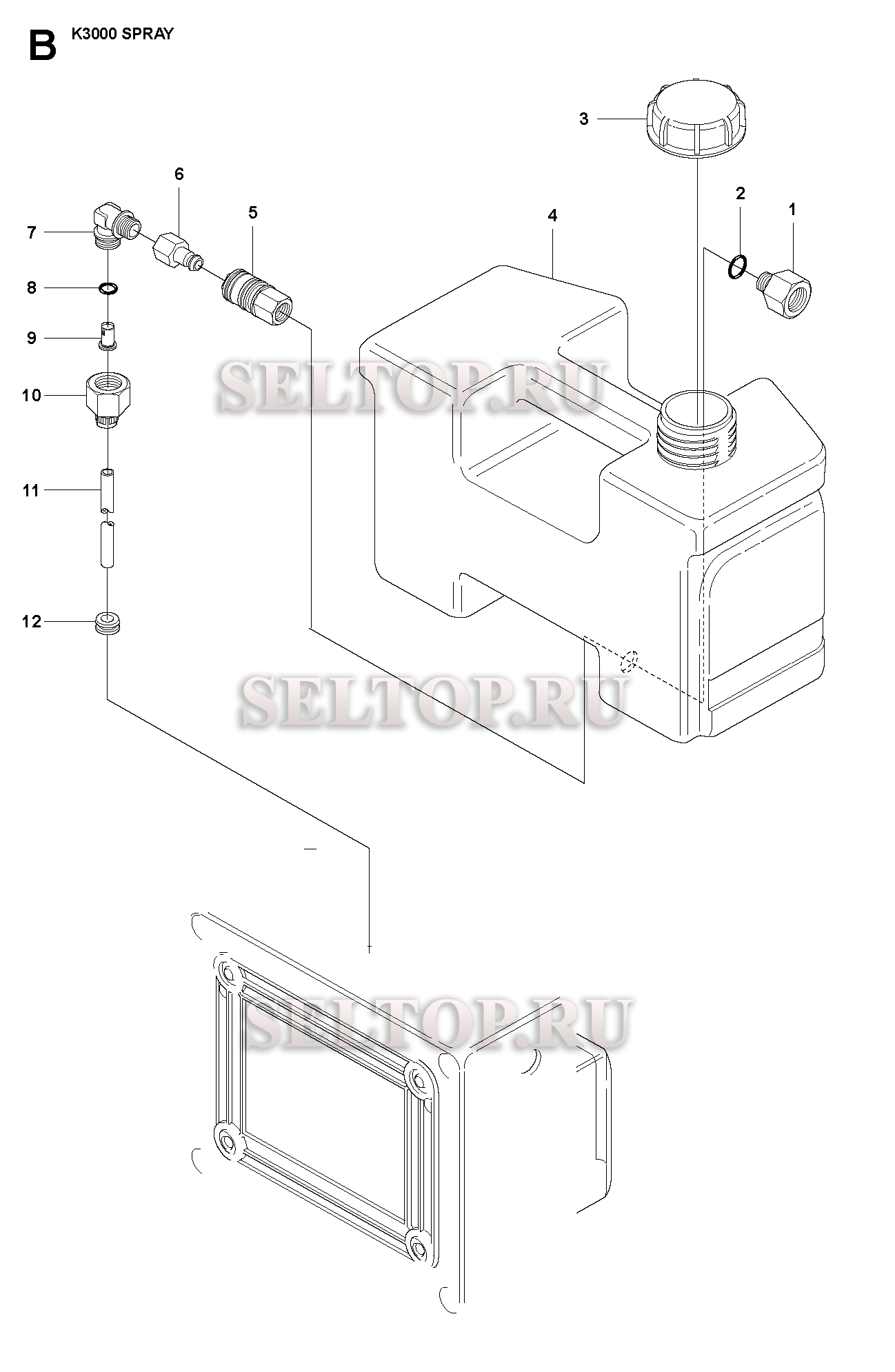 Резервуар для воды для резчика Husqvarna K3000 Spray (с 2007-01), взрыв-схема:
