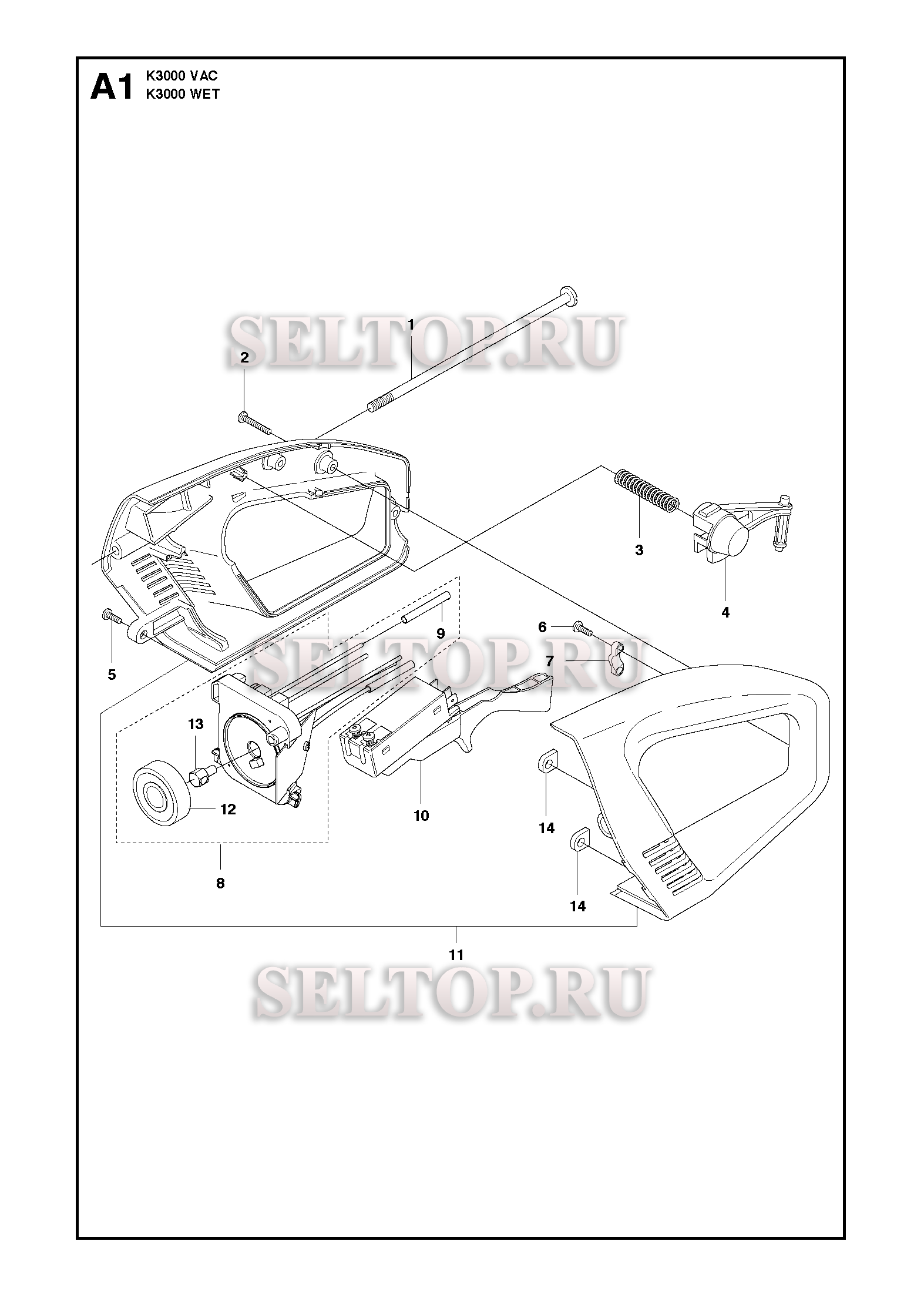 Ручка для резчика Husqvarna K3000 VAC (с 2012-01), взрыв-схема: