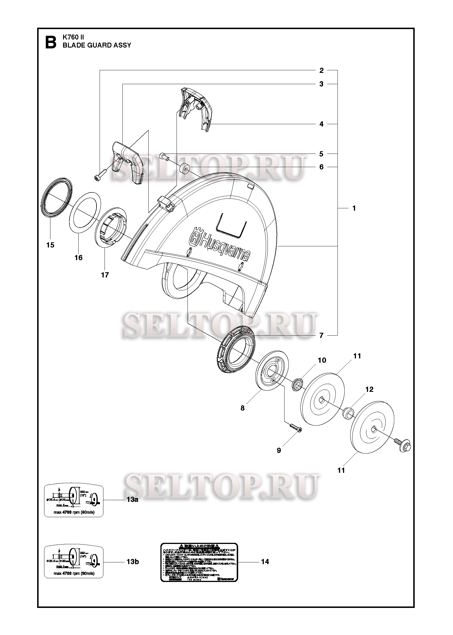 Защита режущего механизма для резчика Husqvarna K760 II (с 2013-02), взрыв-схема: