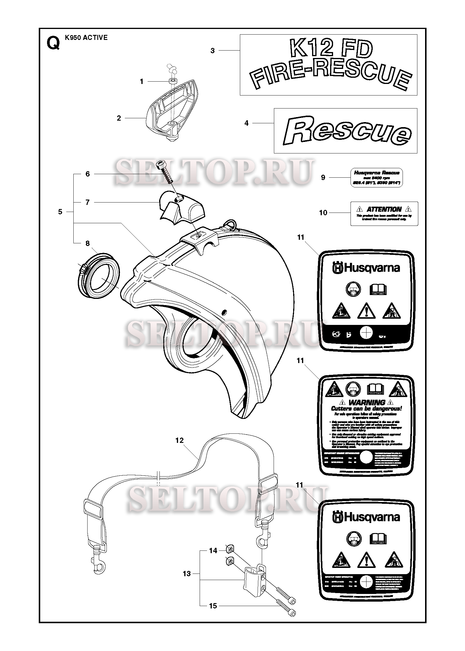 Комплект аварийный для резчика Husqvarna K950 (с 2007-01), взрыв-схема: