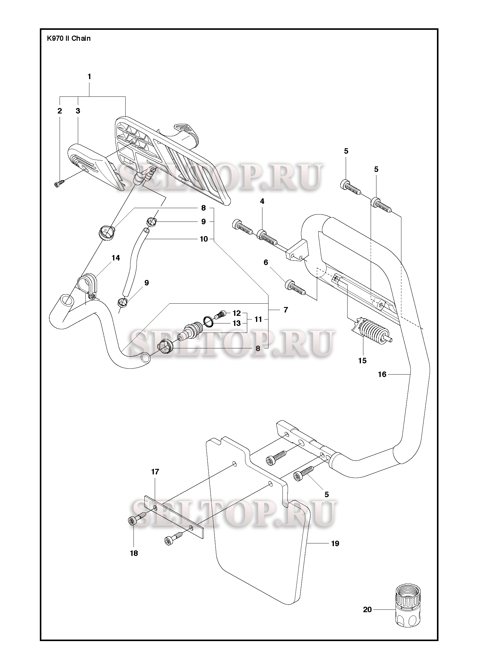 Ручка для резчика Husqvarna K970 II CHAIN (с 2015-03), взрыв-схема: