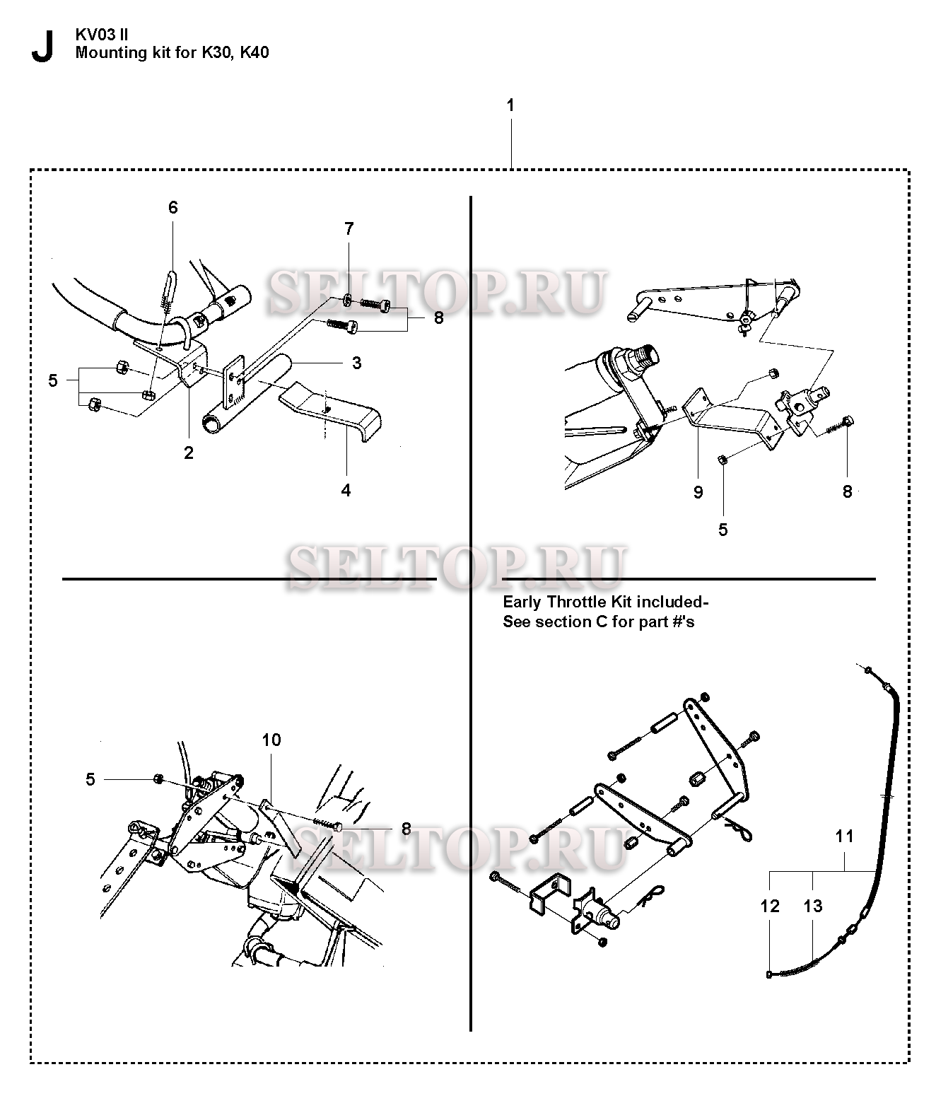 Монтажный комплект для K30,К40 для резчика Husqvarna KV 03 (с 2007-01), взрыв-схема: