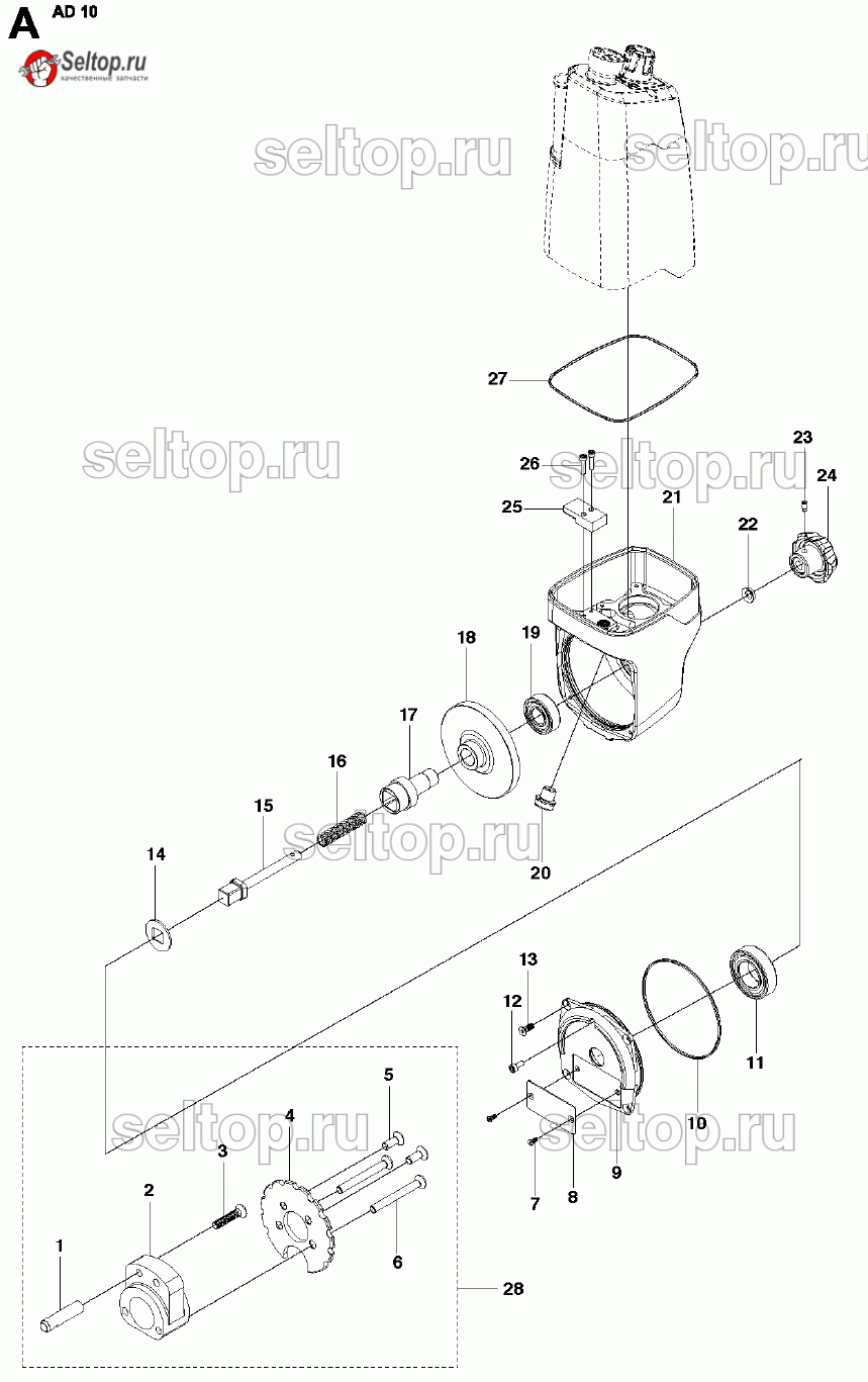 Редуктор для бурильной машины AD 10 (2006-2011) Husqvarna, взрыв-схема:
