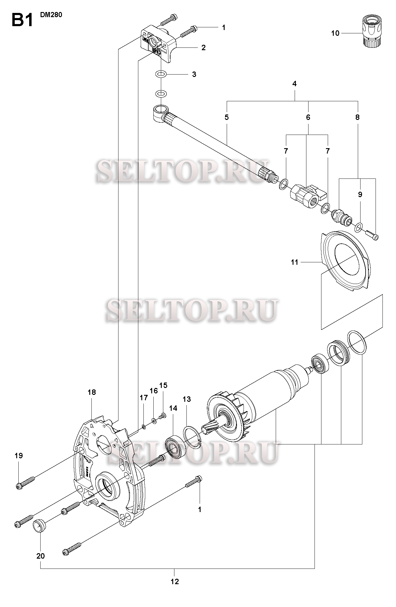Ротор и детали для Husqvarna DM 280 (с 2010-05), взрыв-схема: