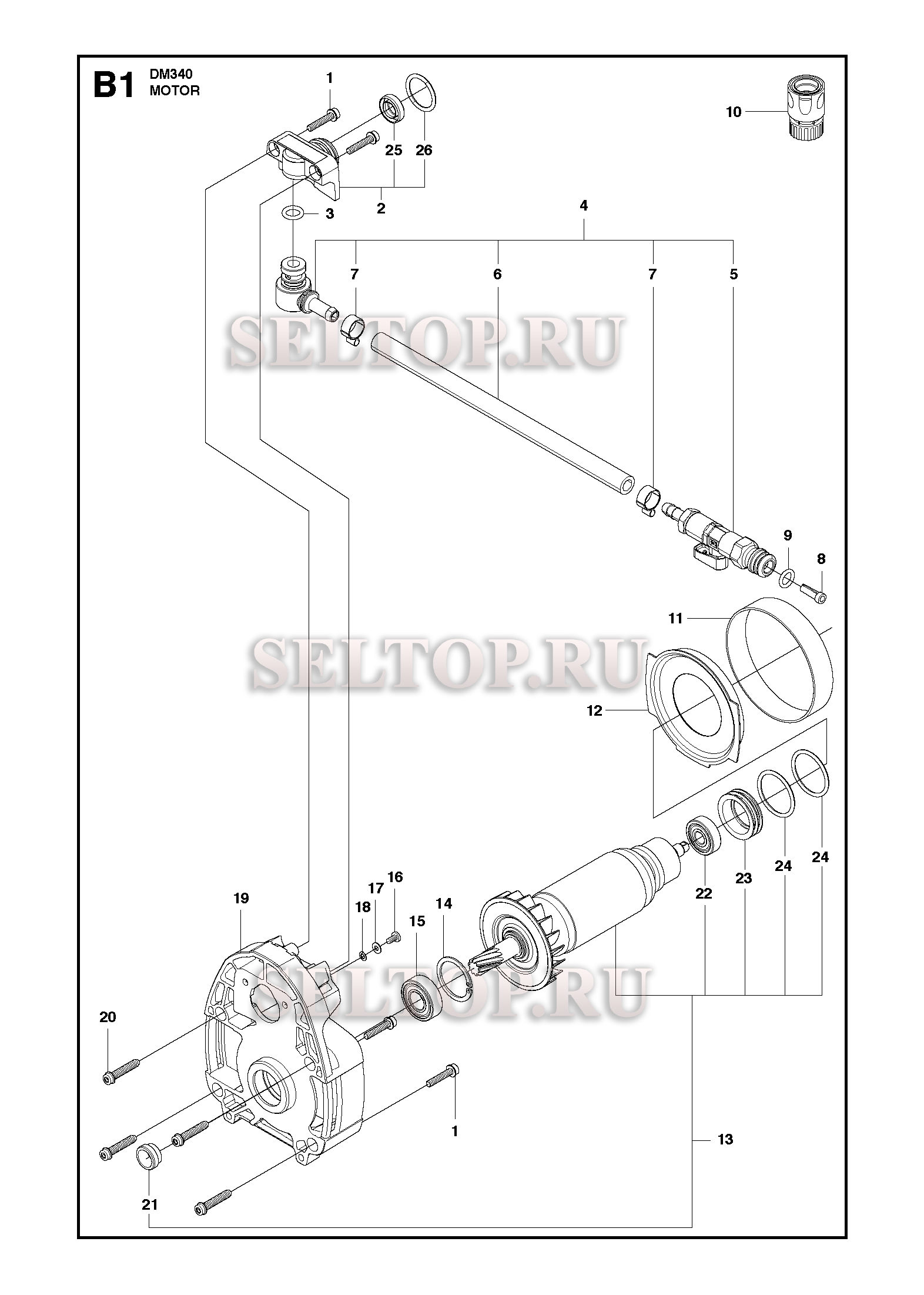 Ротор, подшипники для Husqvarna DM 340 (с 2012), взрыв-схема: