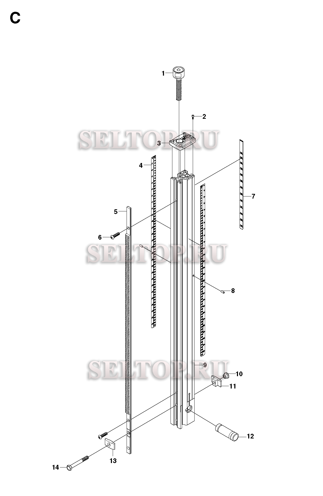 Стойка в сборе для Husqvarna DS 250 (с 2008-27), взрыв-схема: