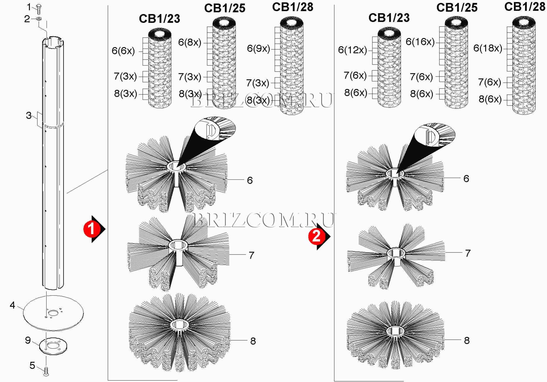 Боковая щетка CARLITE (0.174-407.0), взрыв-схема: