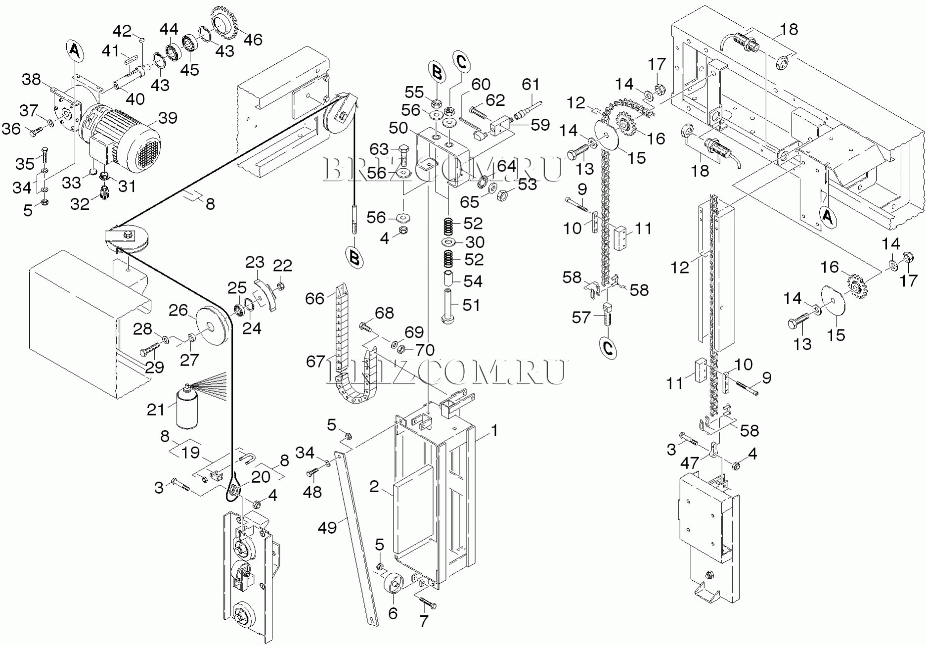Тяга подъема щетка для крыши (0.174-312.0), взрыв-схема: