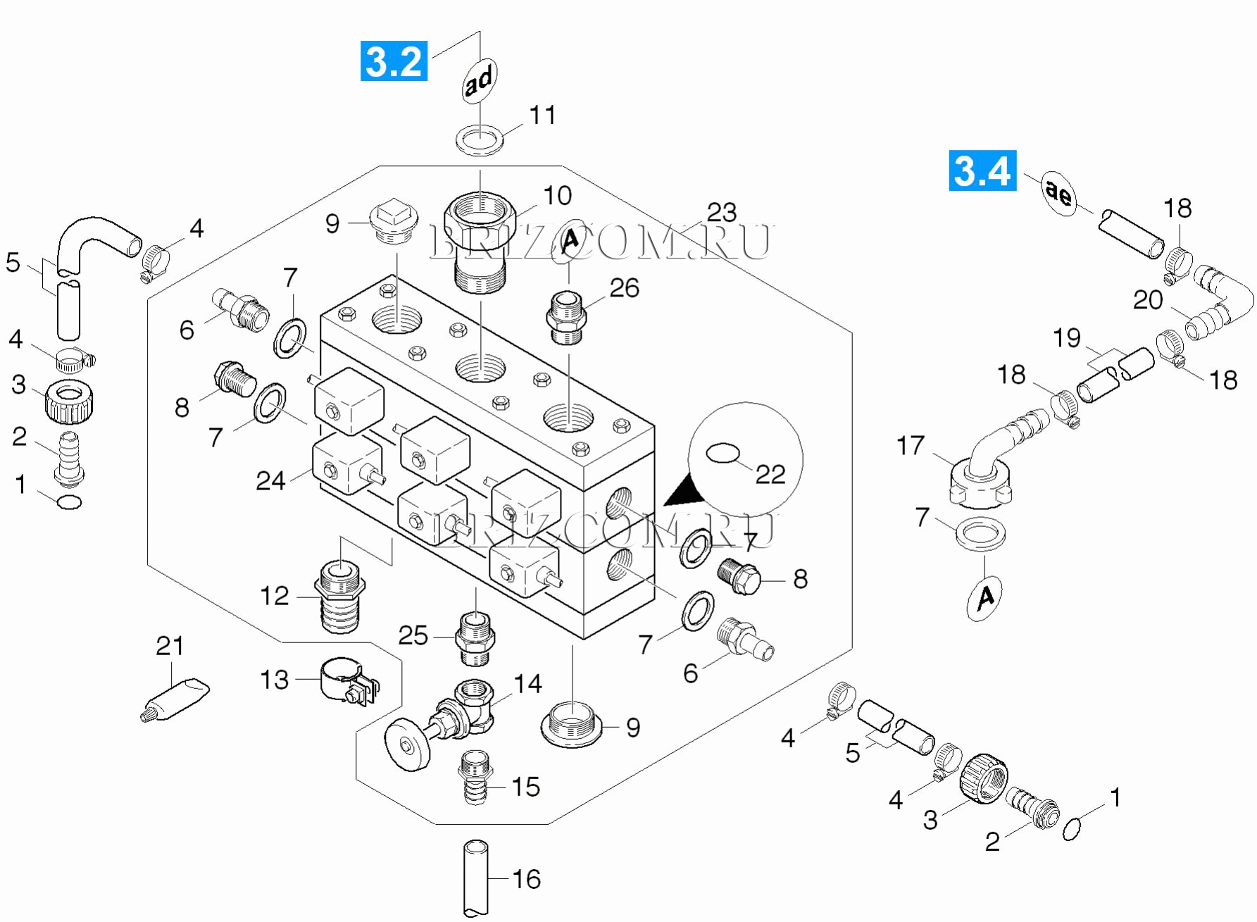 Водораспределитель (0.174-332.0), взрыв-схема:
