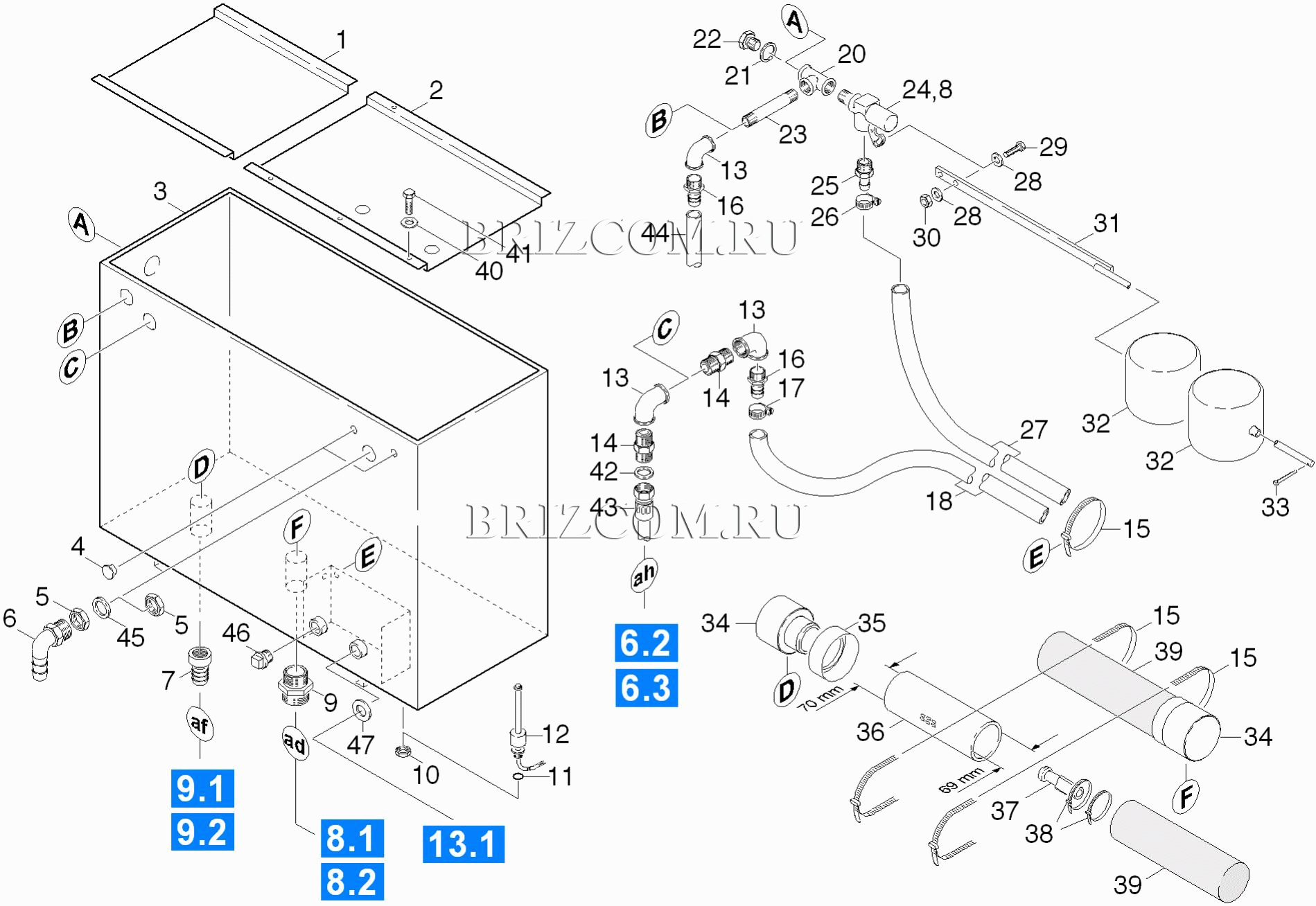 Поплавковый резервуар (0.172-500.0), взрыв-схема: