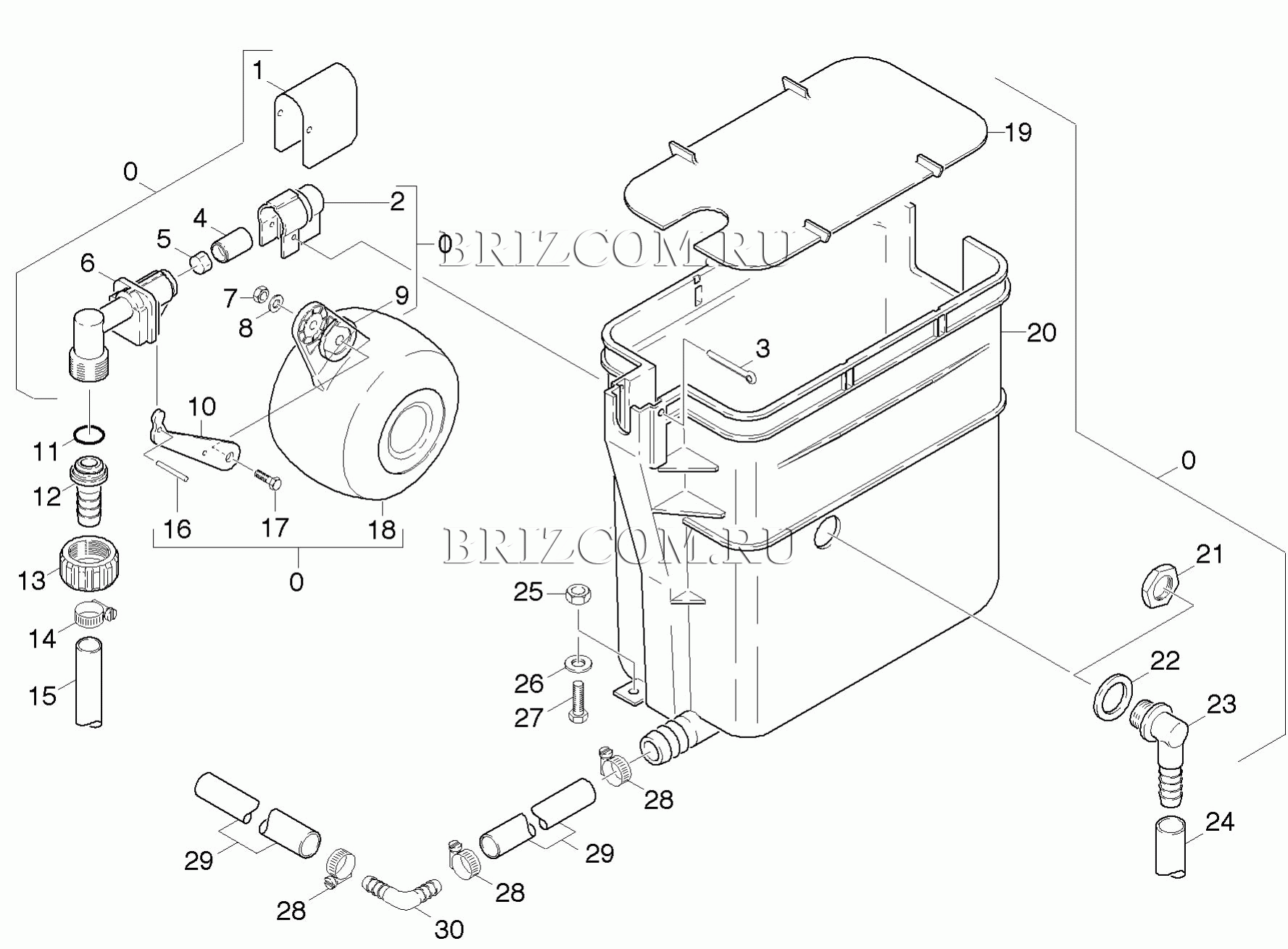Поплавковый резервуар (0.208-101.0), взрыв-схема: