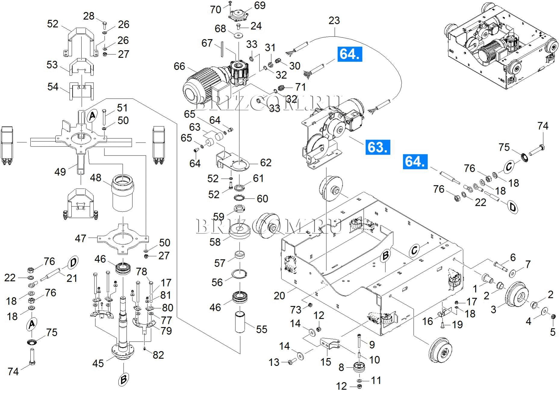 Каретка с боковыми щетками слева (0.114-354.0), взрыв-схема: