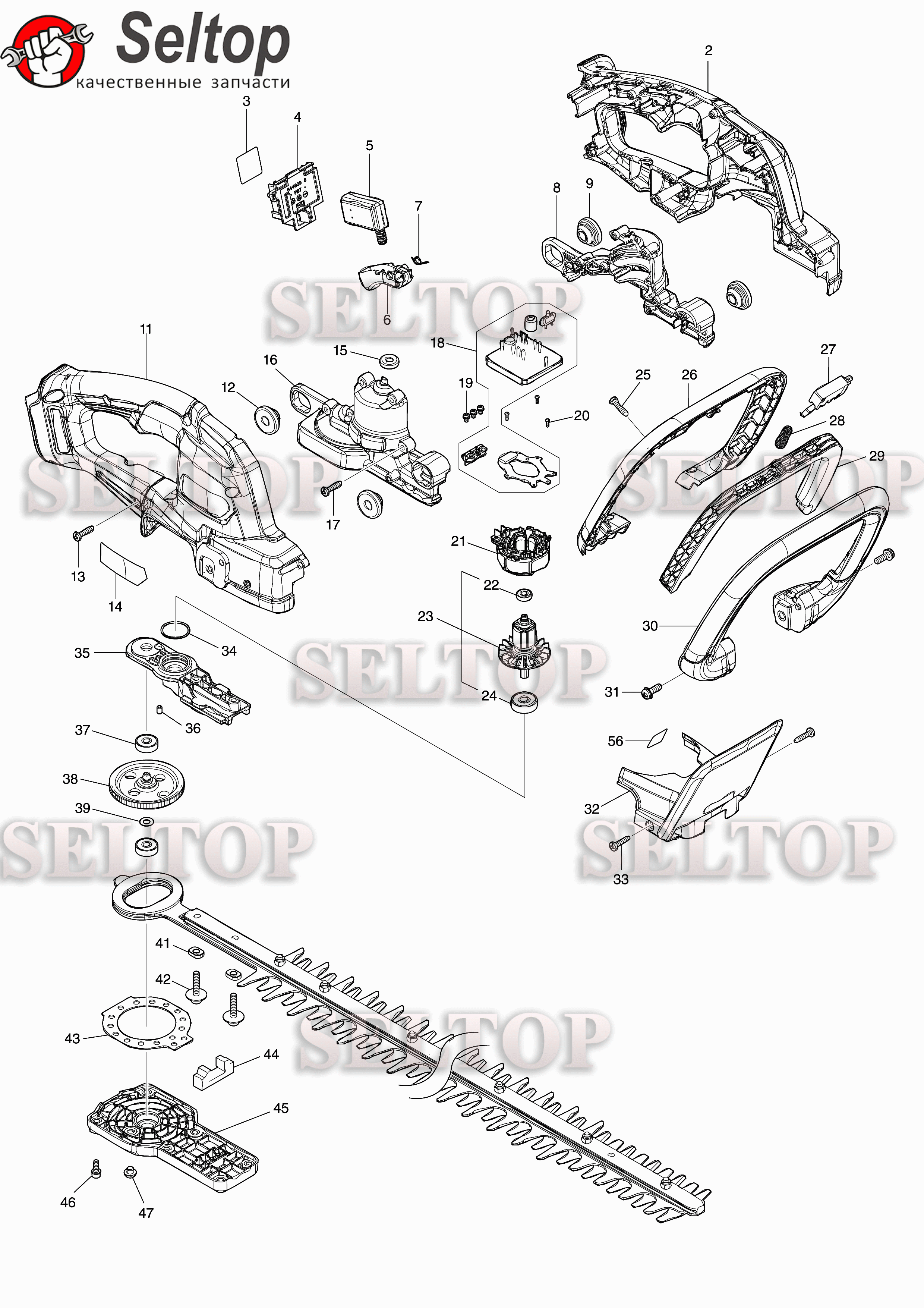 Запчасти для аккумуляторного кустореза Makita DUH 606 (схема 1), взрыв-схема:
