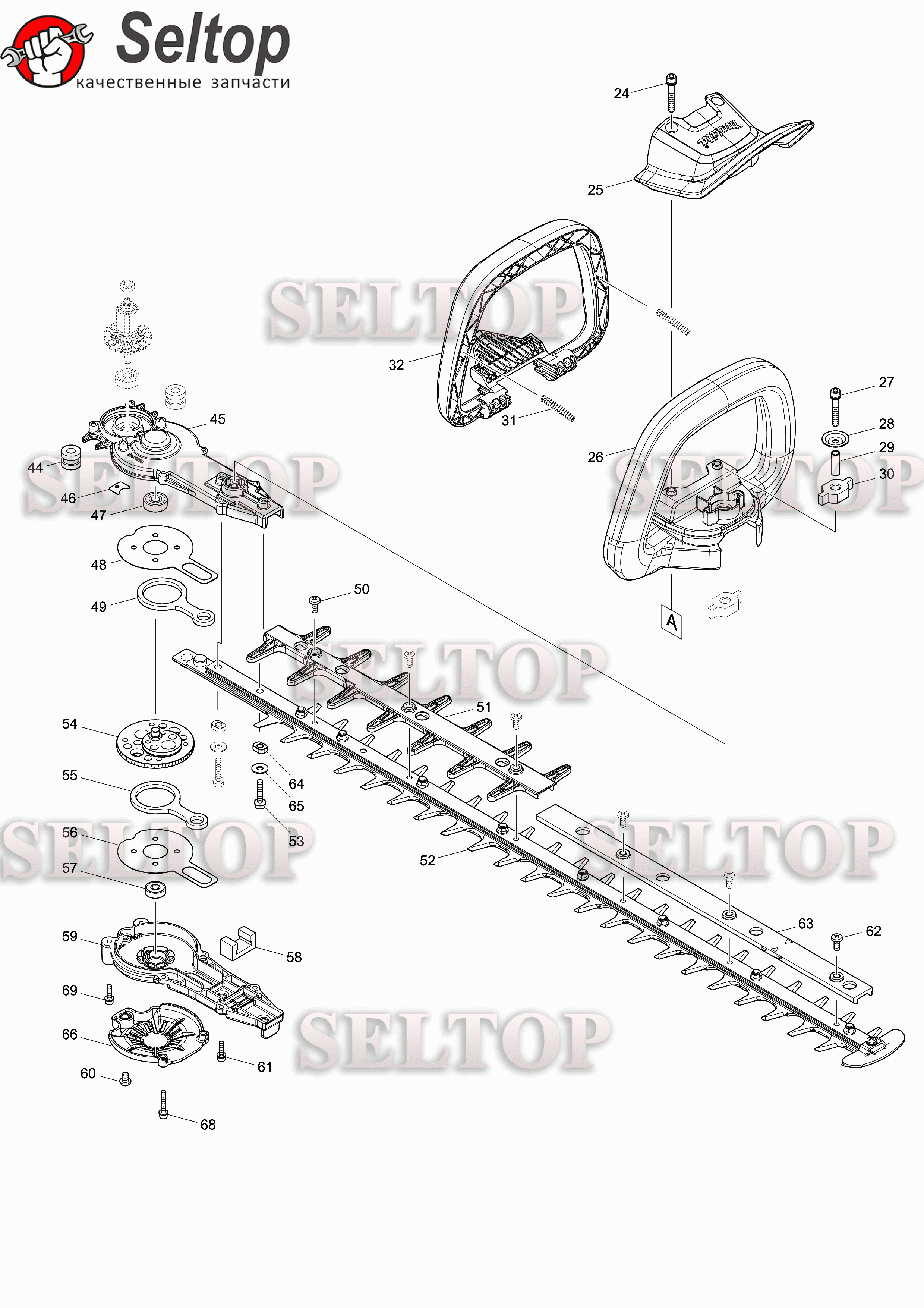 Запчасти для аккумуляторного кустореза Makita DUH 752 Z (схема 2), взрыв-схема: