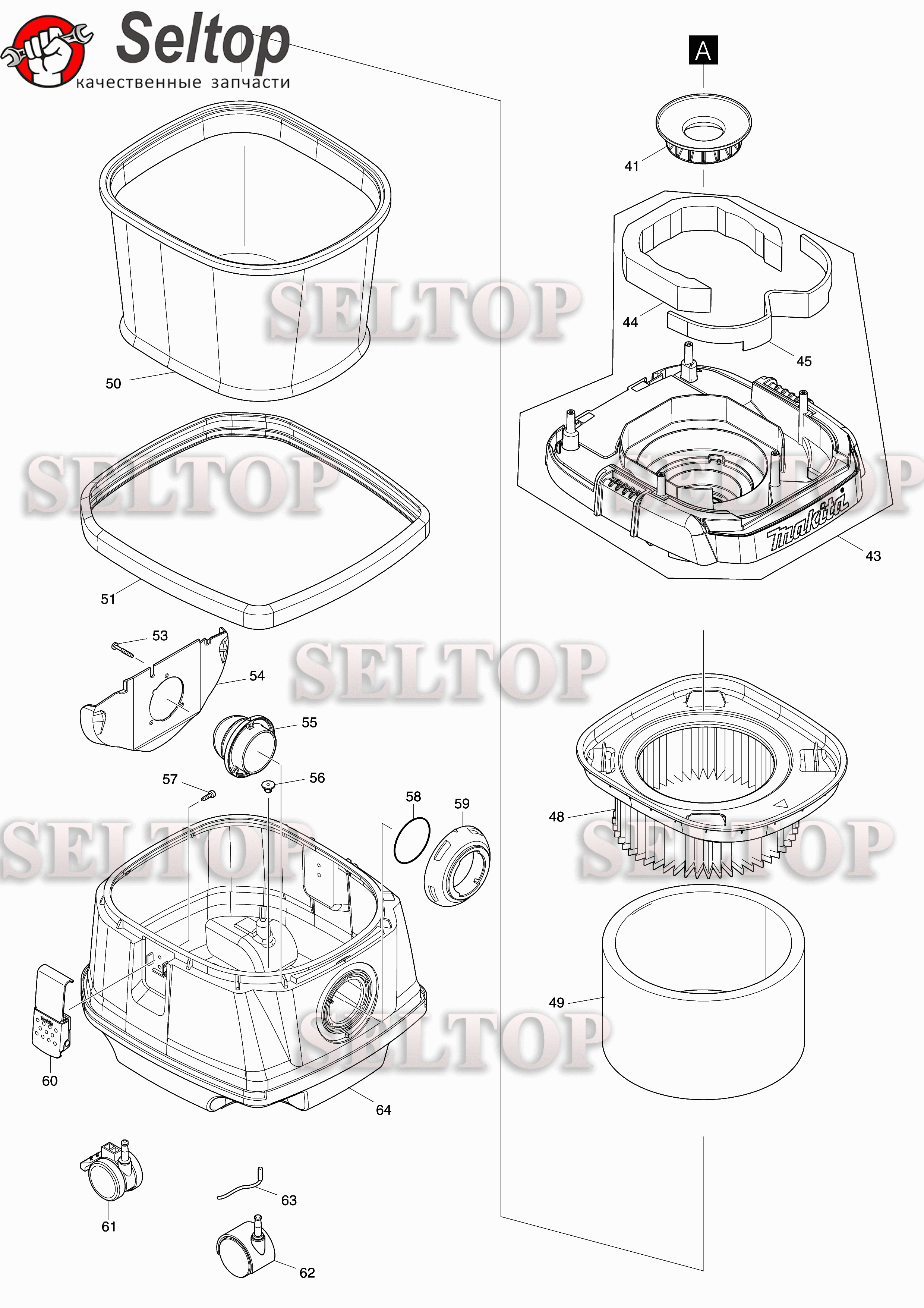 Запчасти для аккумуляторного пылесоса Makita DVC 867 LZX4 (часть 2)