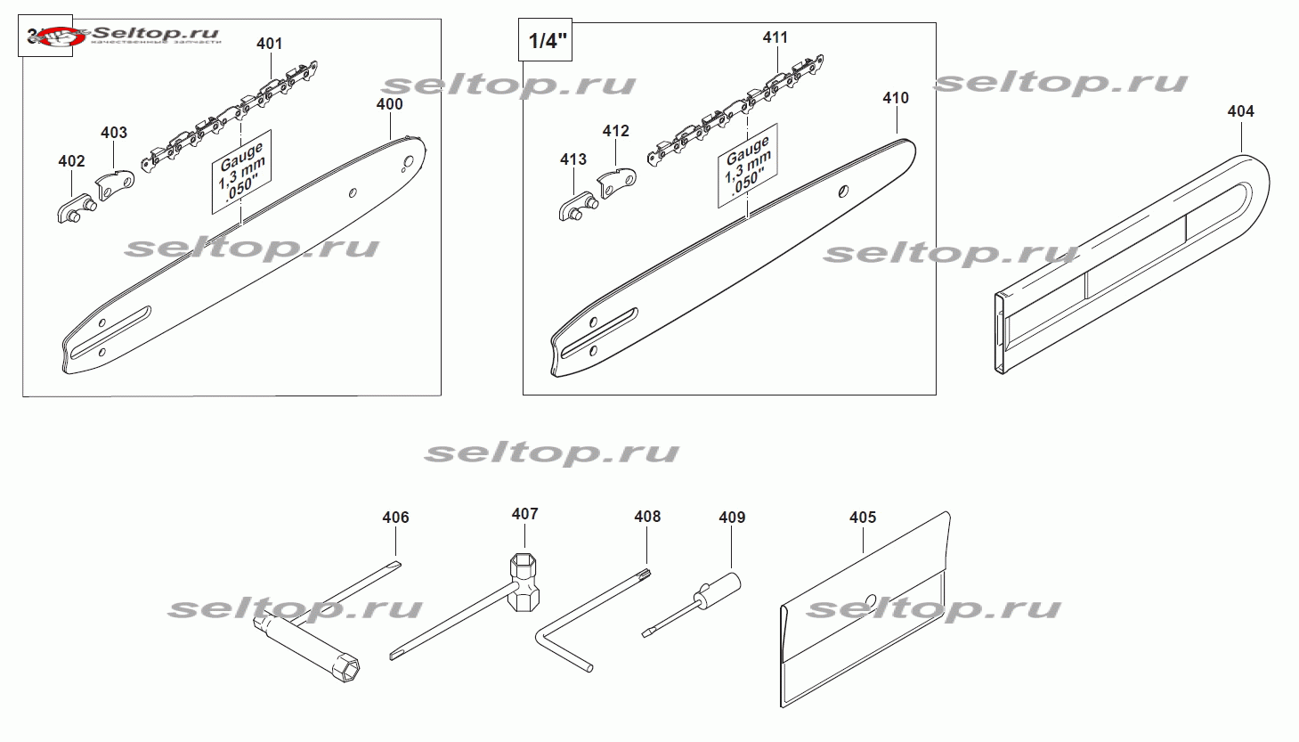 Шина, цепь, инструмент для бензопилы Makita DCS 3410 TLC, взрыв-схема: