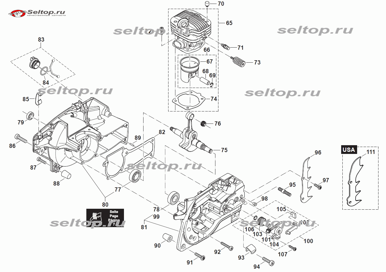 Цилиндр, поршень, цпг, картер, коленвал для бензопилы DCS 5001, взрыв-схема: