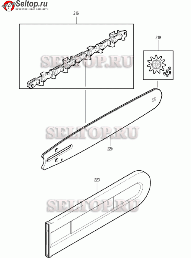 Цепь, шина для Makita DCS 5200I, взрыв-схема: