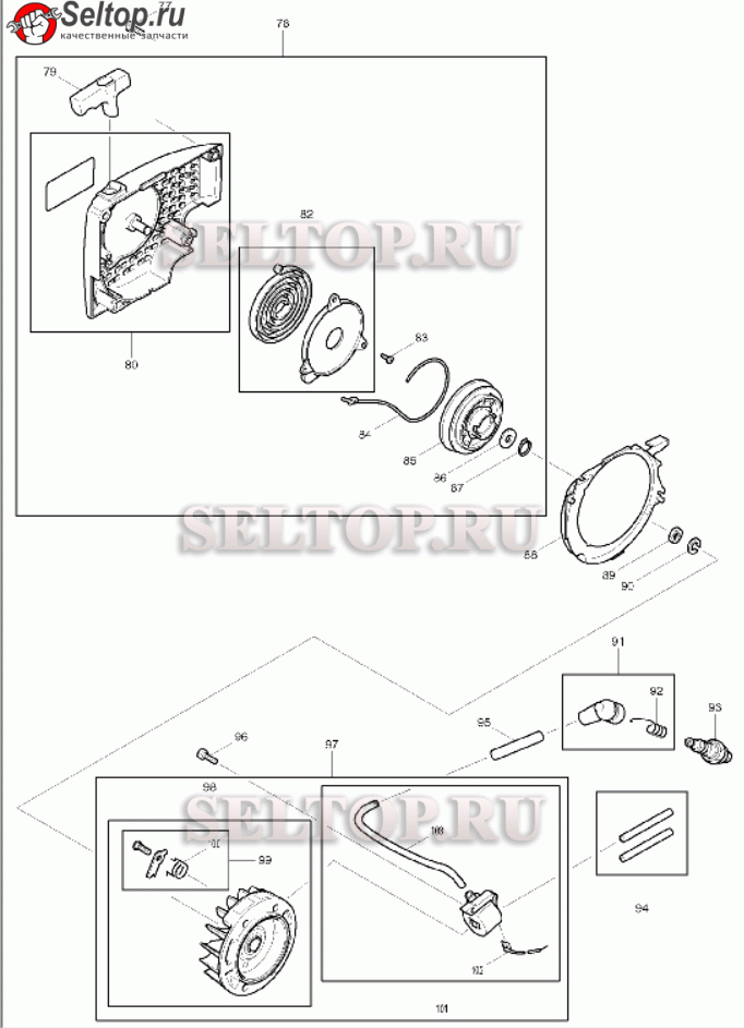 Стартер, система зажигания для Makita DCS 5200I, взрыв-схема: