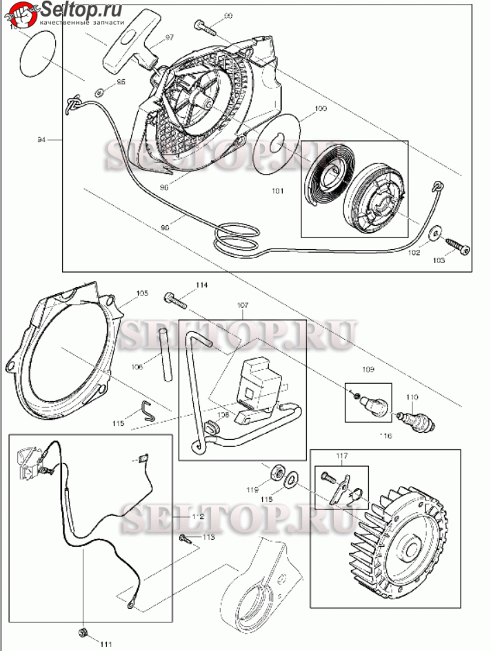 Стартер, система зажигания для Makita DCS 7300, взрыв-схема: