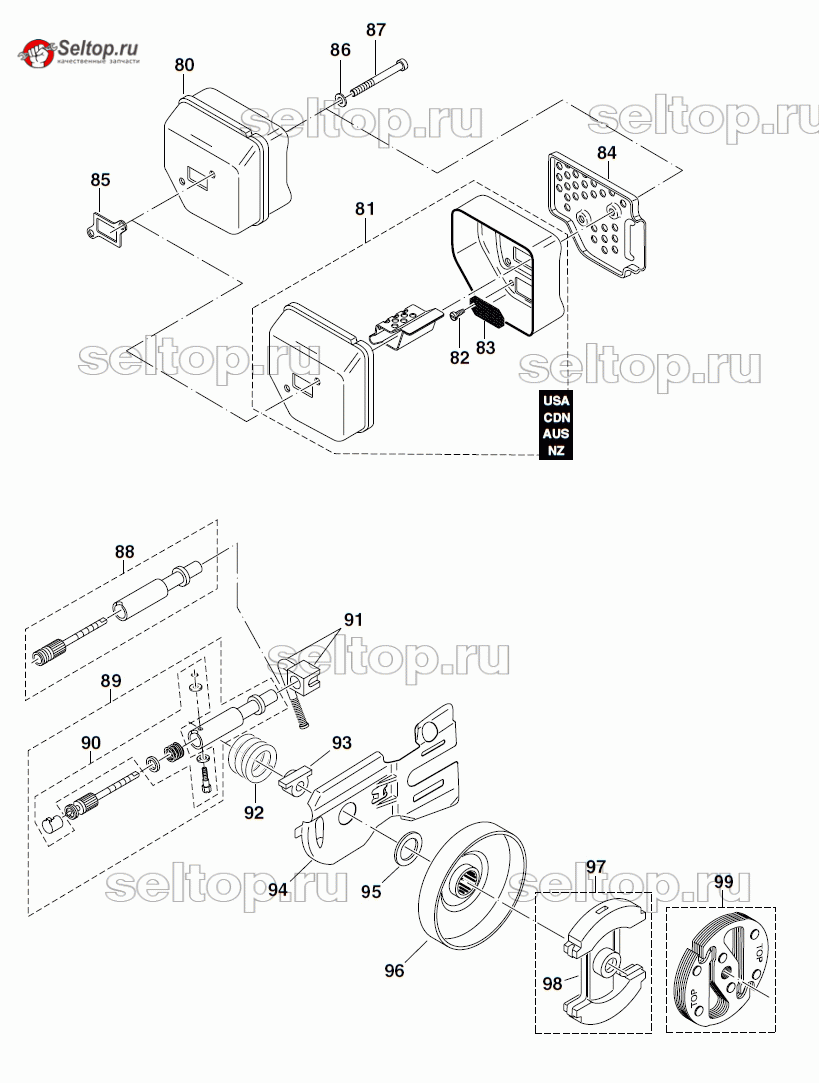 Сцепление, масляный насос, глушитель для Makita PS 344