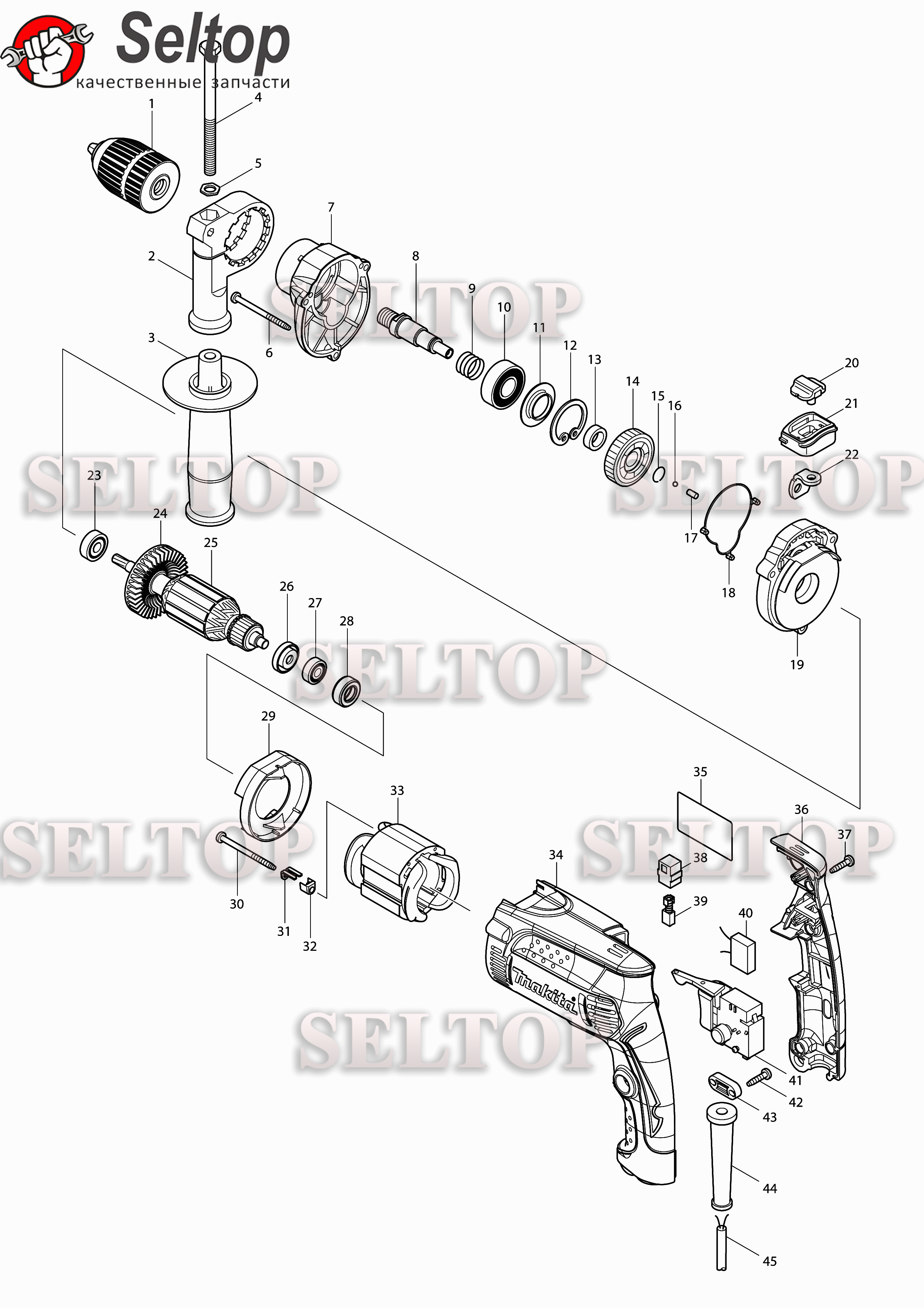 Запчасти для дрели Makita HP 1631 KX2, взрыв-схема: