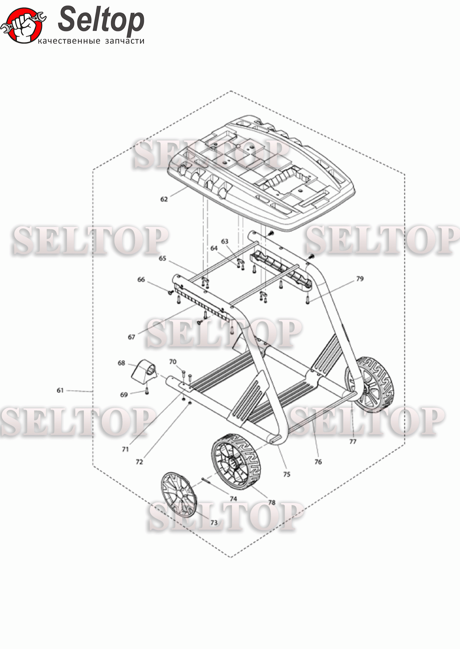 Каркас, крышка контейнера, комплект колес для садового измельчителя Makita UD 2500