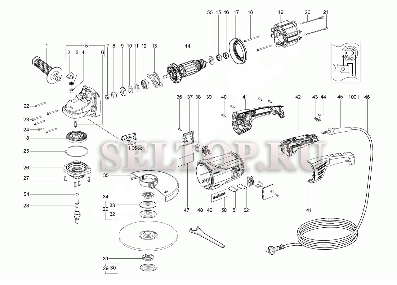 Запчасти для болгарки (ушм) Metabo w 2000 (тип 06418260), взрыв-схема: