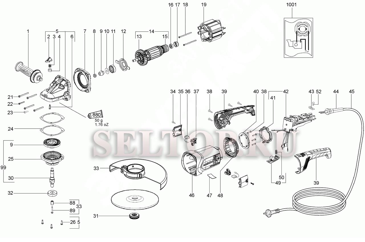 Запчасти для болгарки (ушм) Metabo we 26-230 mvt quick (6.06475.00) (тип 06475000), взрыв-схема: