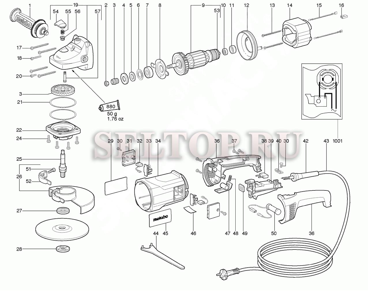 Запчасти для болгарки (ушм) Metabo wx 21-180 (тип 06401000), взрыв-схема: