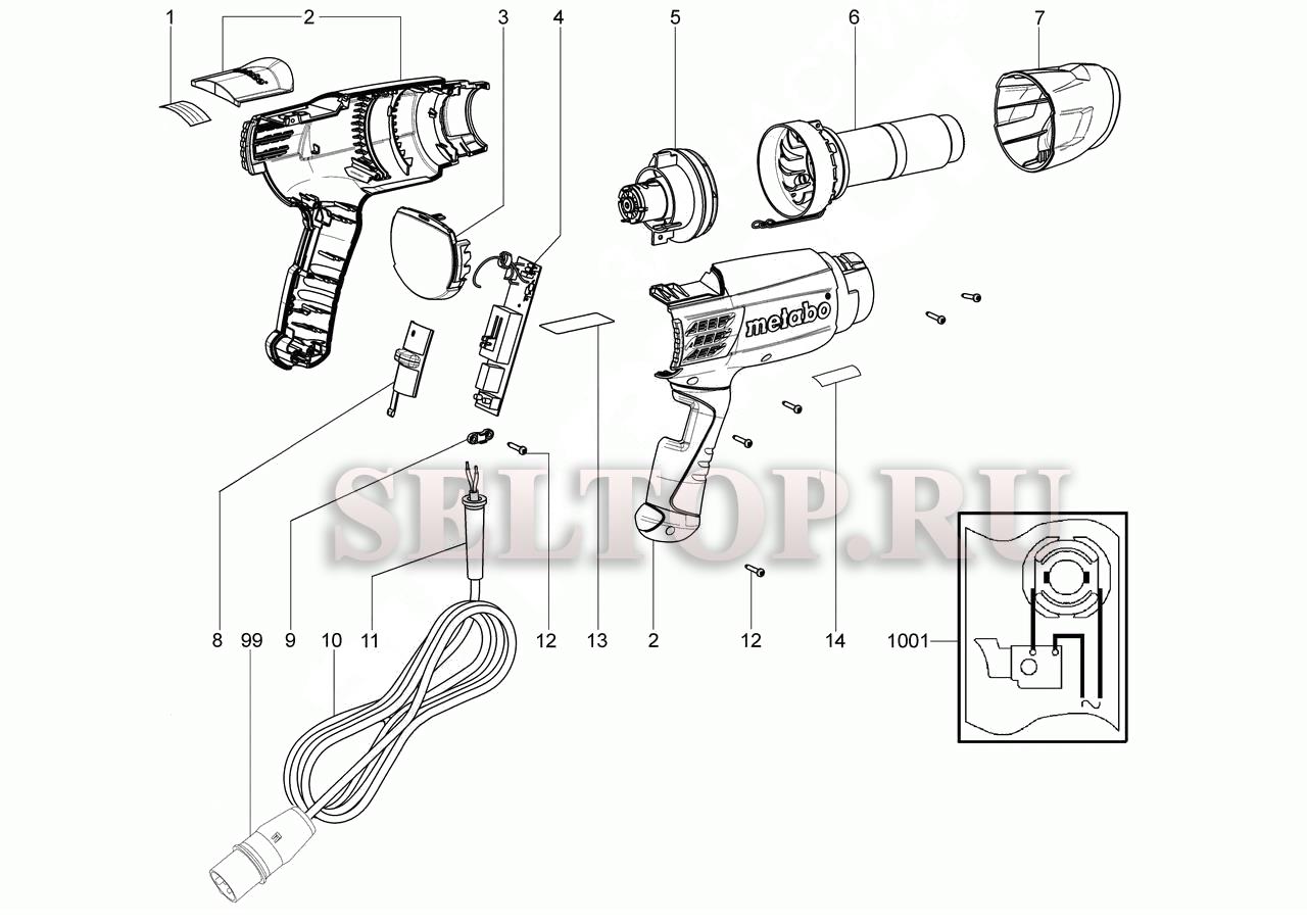 Запчасти для термопистолета Metabo h 16-500 (тип 21002000), взрыв-схема: