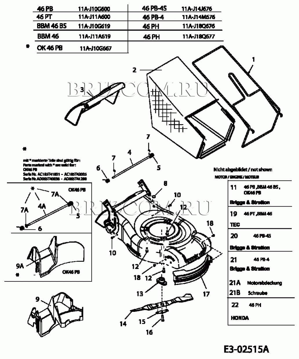 Травосборник, ножи, двигатель МТД 46 PB-4 S 11A-J14J676 (2005), взрыв-схема: