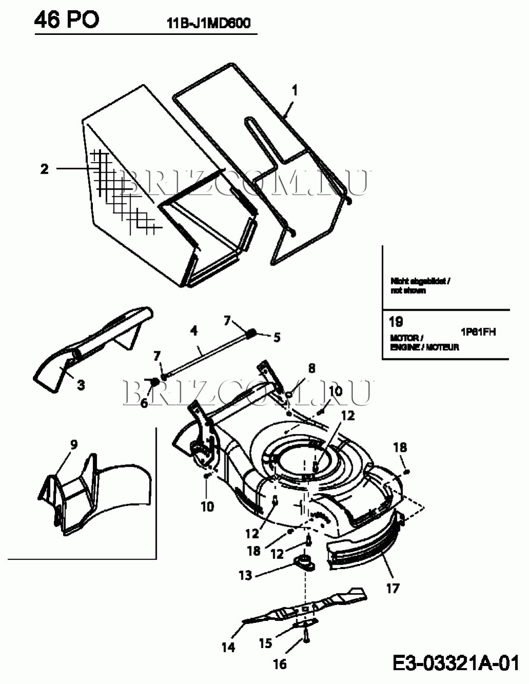 Травосборник, ножи, двигатель МТД 46 PO 11B-J1MD600 (2007), взрыв-схема: