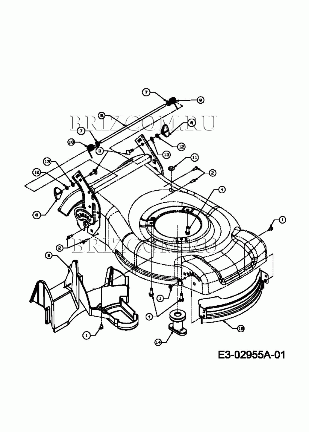 Передняя перегородка, задний дефлектор, адаптер ножа МТД 46 SPBM 12C-J24M678 (2007), взрыв-схема: