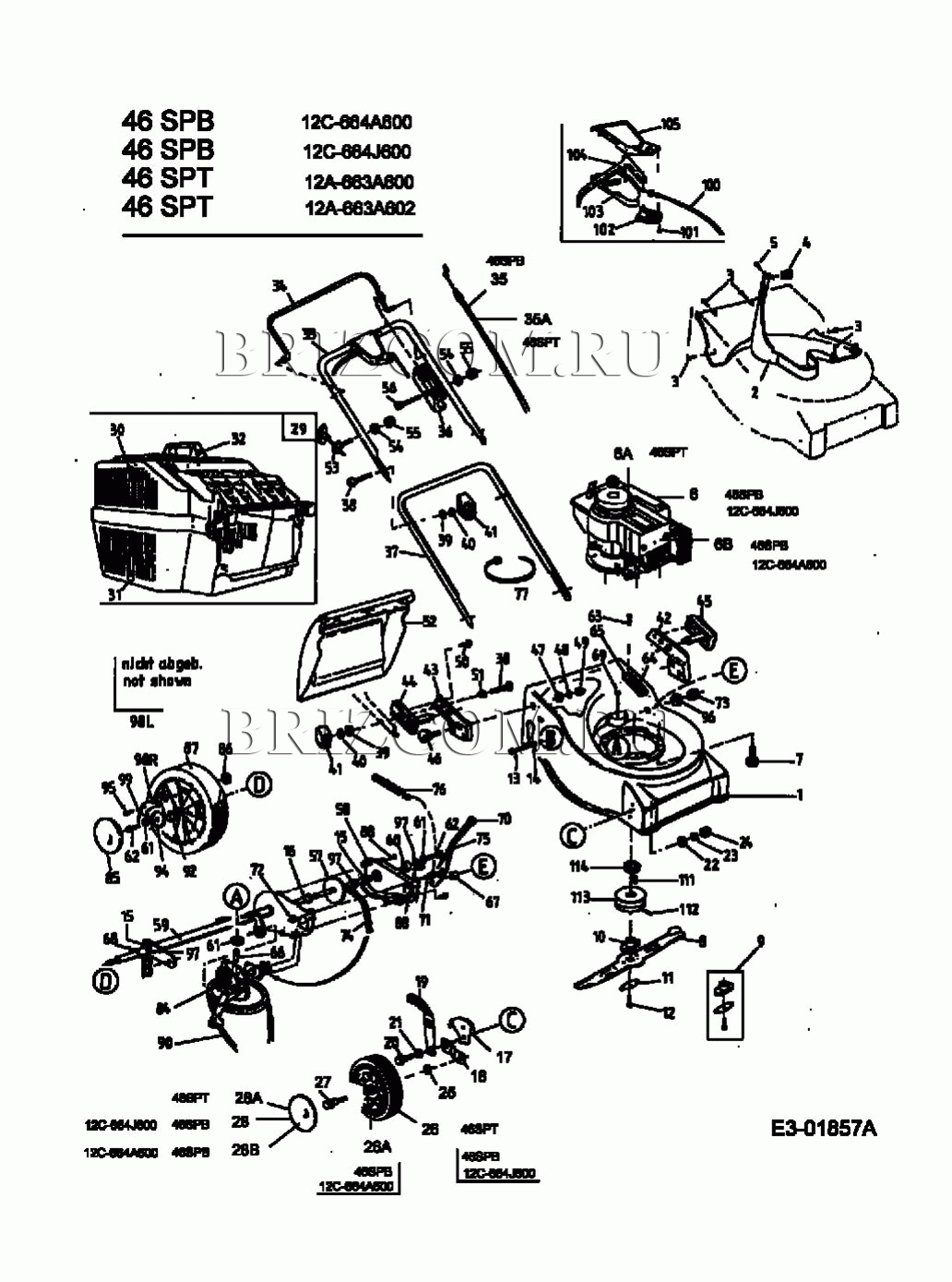 Основная деталировка МТД 46 SPT 12A-663A602 (2003), взрыв-схема: