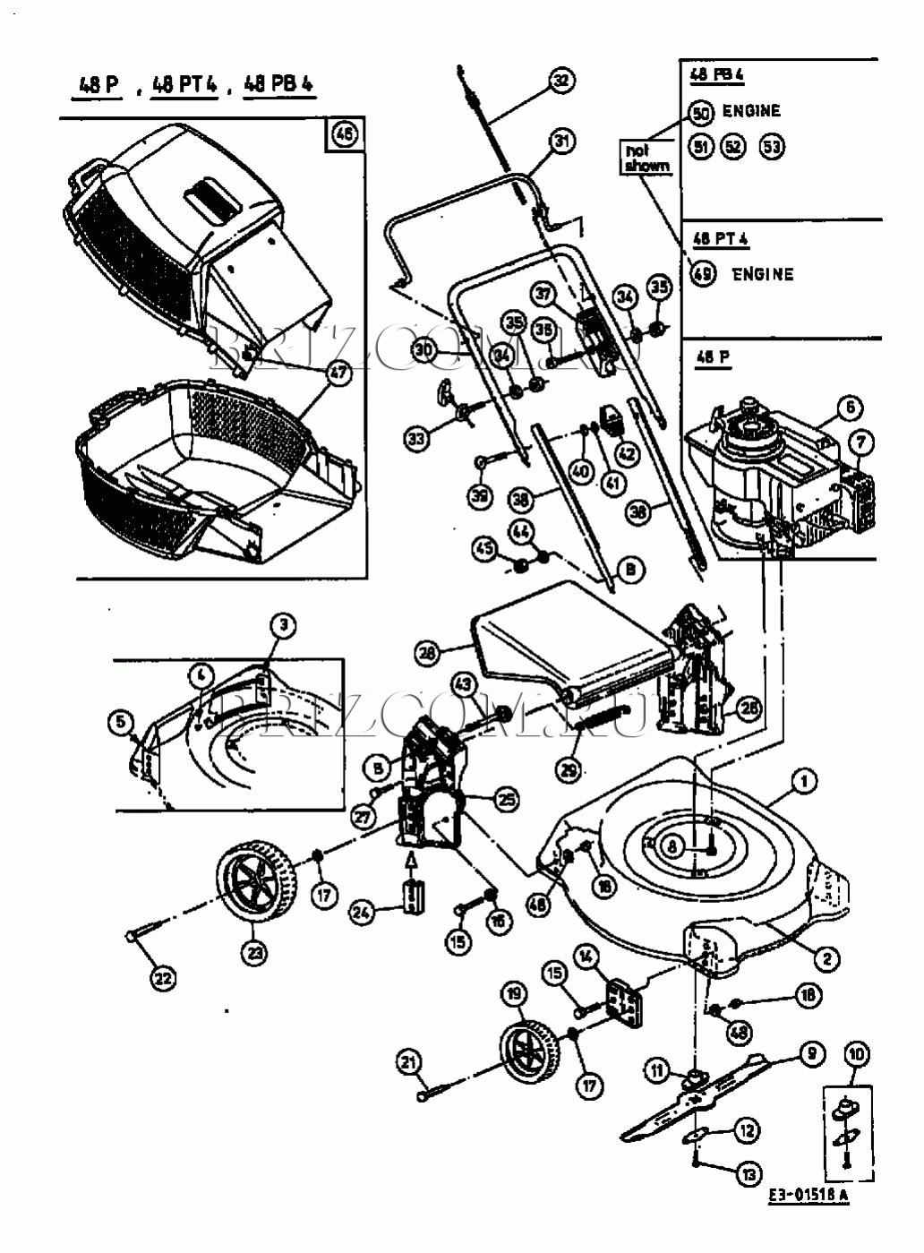 Основная деталировка МТД 48 P 11A-V01A600 (2001), взрыв-схема: