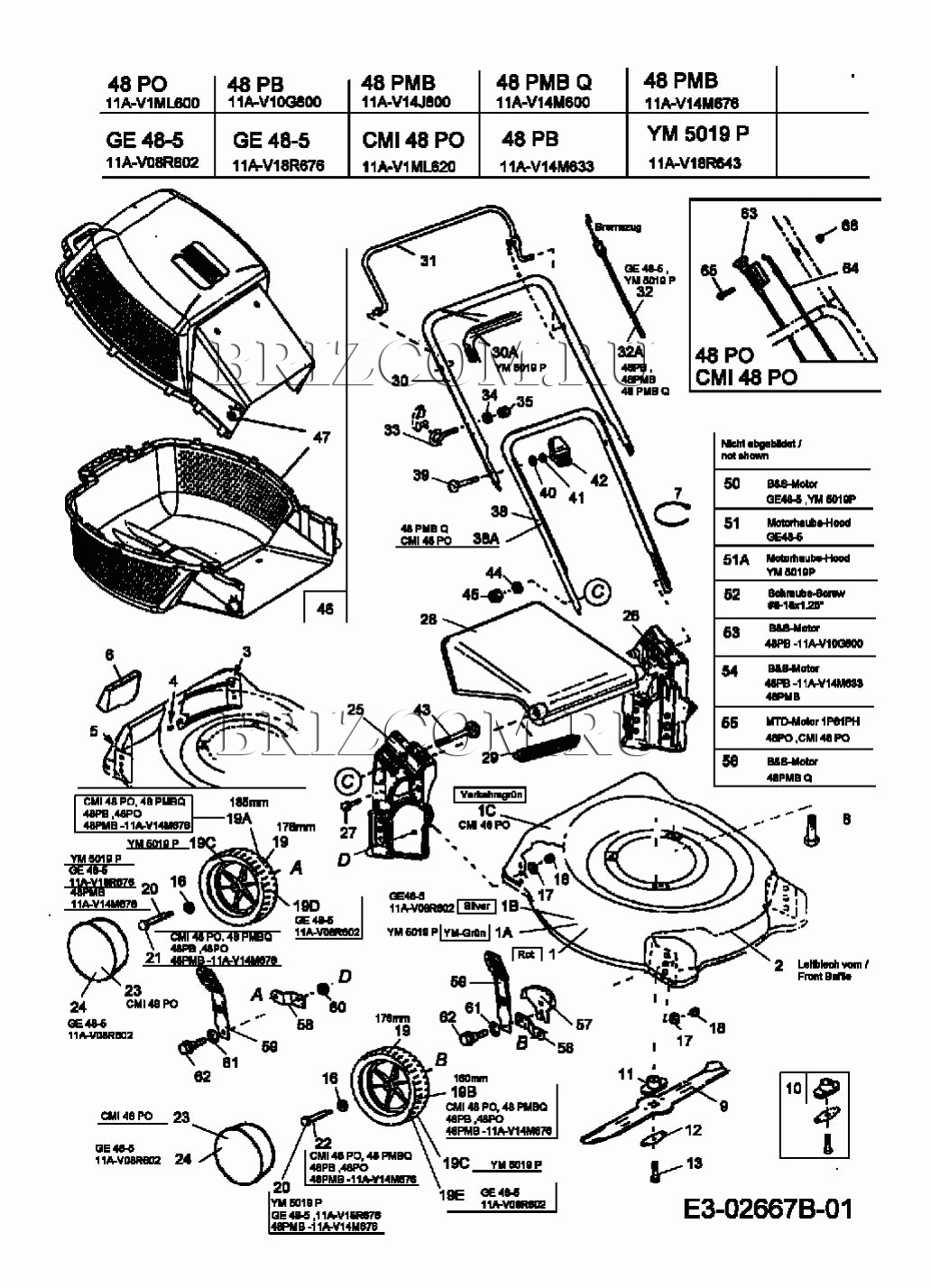 Основная деталировка МТД 48 PB 11A-V10G600 (2007), взрыв-схема: