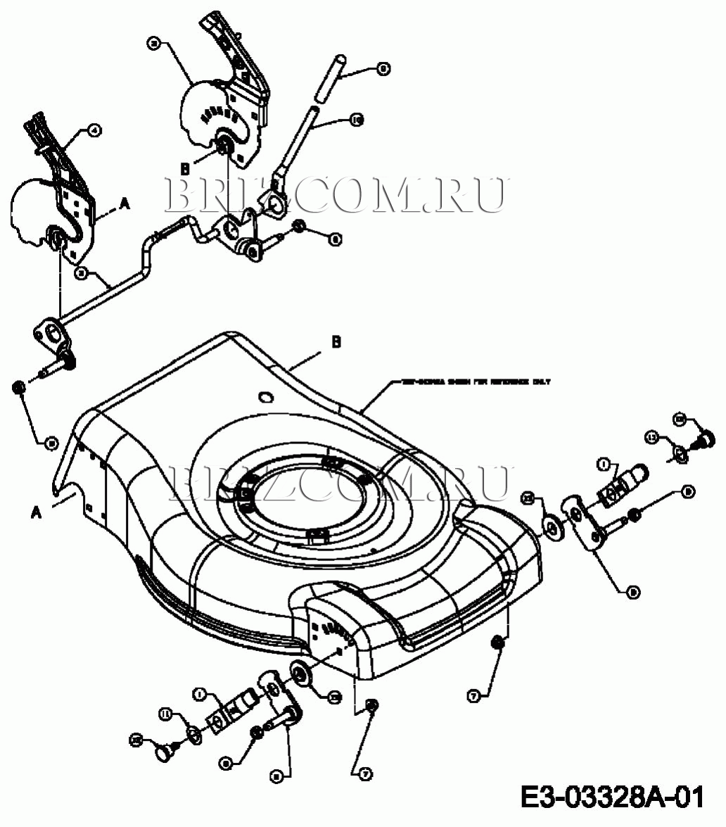 Регулятор высоты среза МТД 53 SPK 12BV847D600 (2007), взрыв-схема: