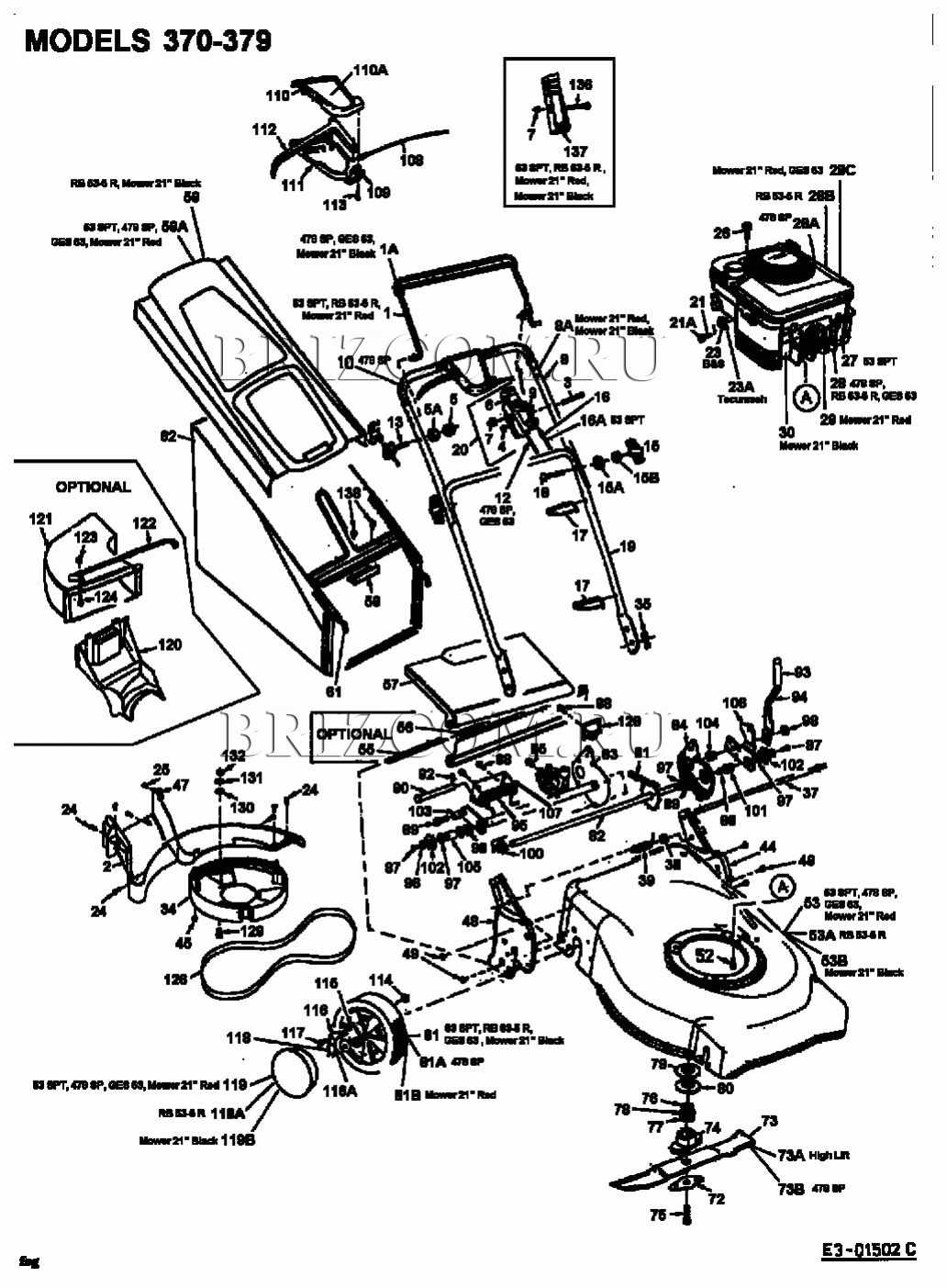Основная деталировка МТД 53 SPT 12A-373N600 (2002), взрыв-схема: