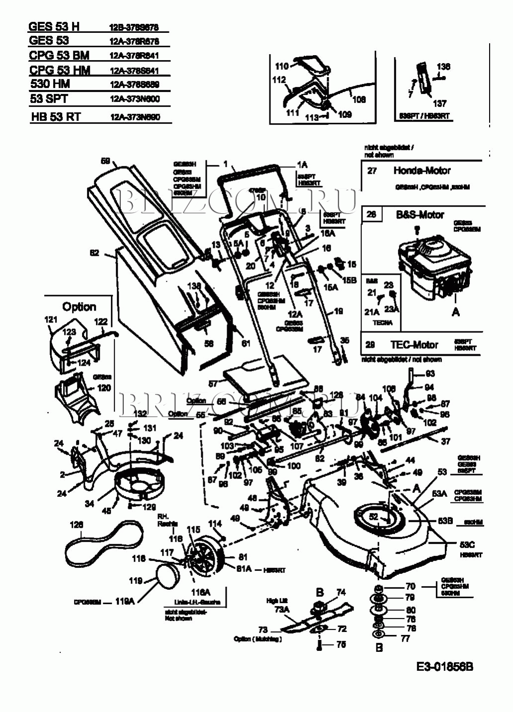 Основная деталировка МТД GES 53 12A-378R678 (2004), взрыв-схема:
