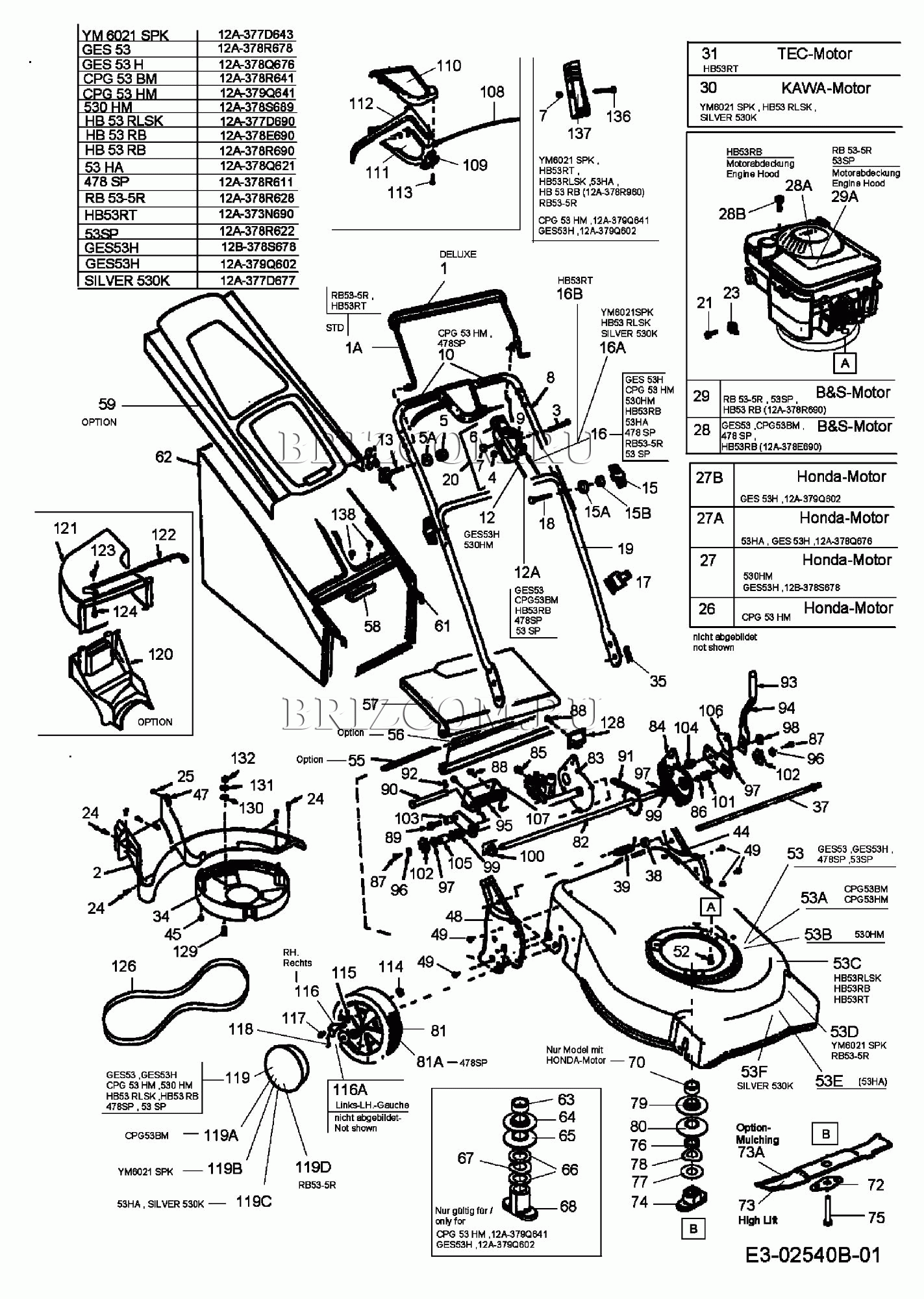 Основная деталировка МТД GES 53 12A-378R678 (2006), взрыв-схема: