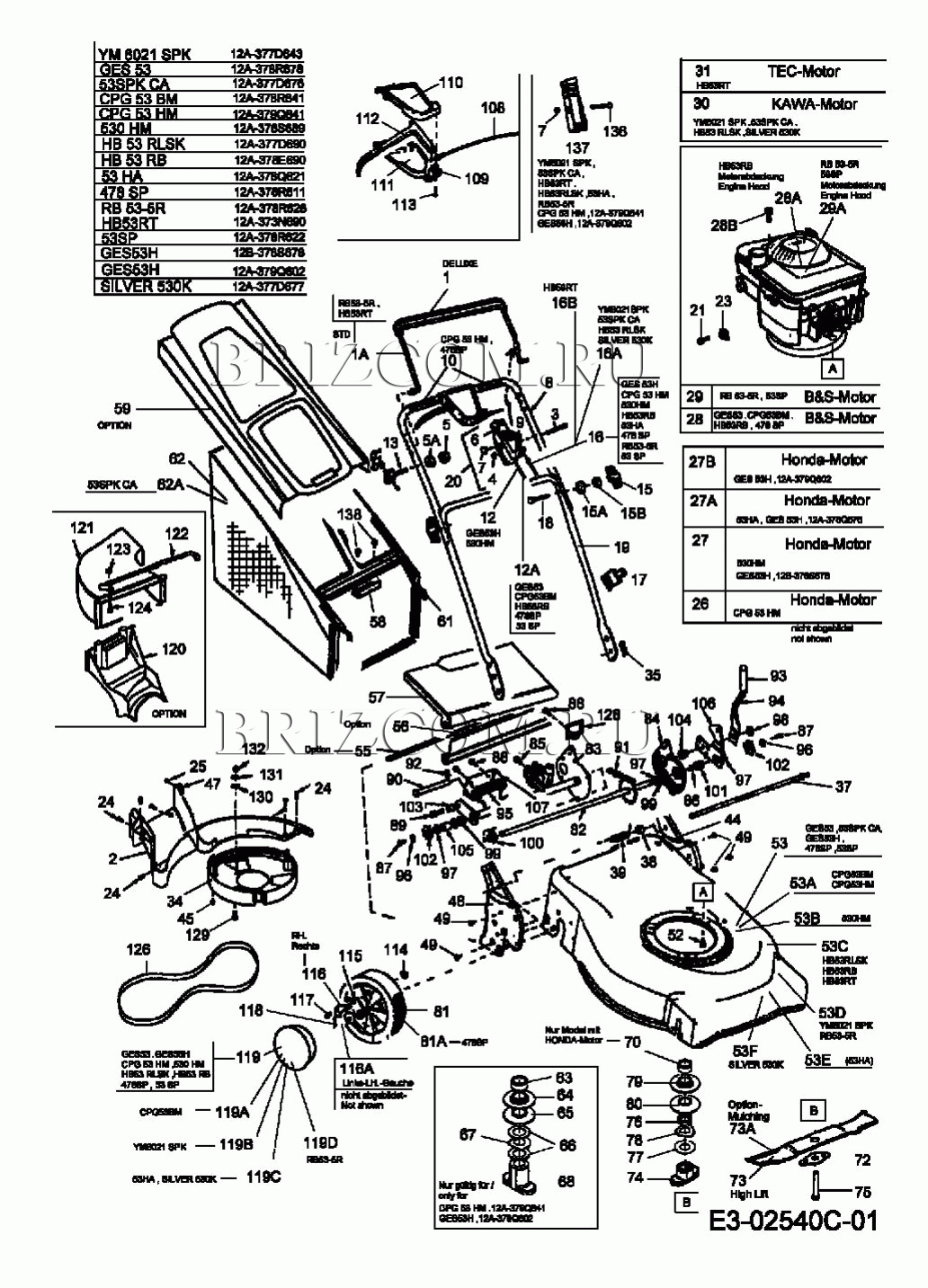 Основная деталировка МТД GES 53 12A-378R678 (2007), взрыв-схема: