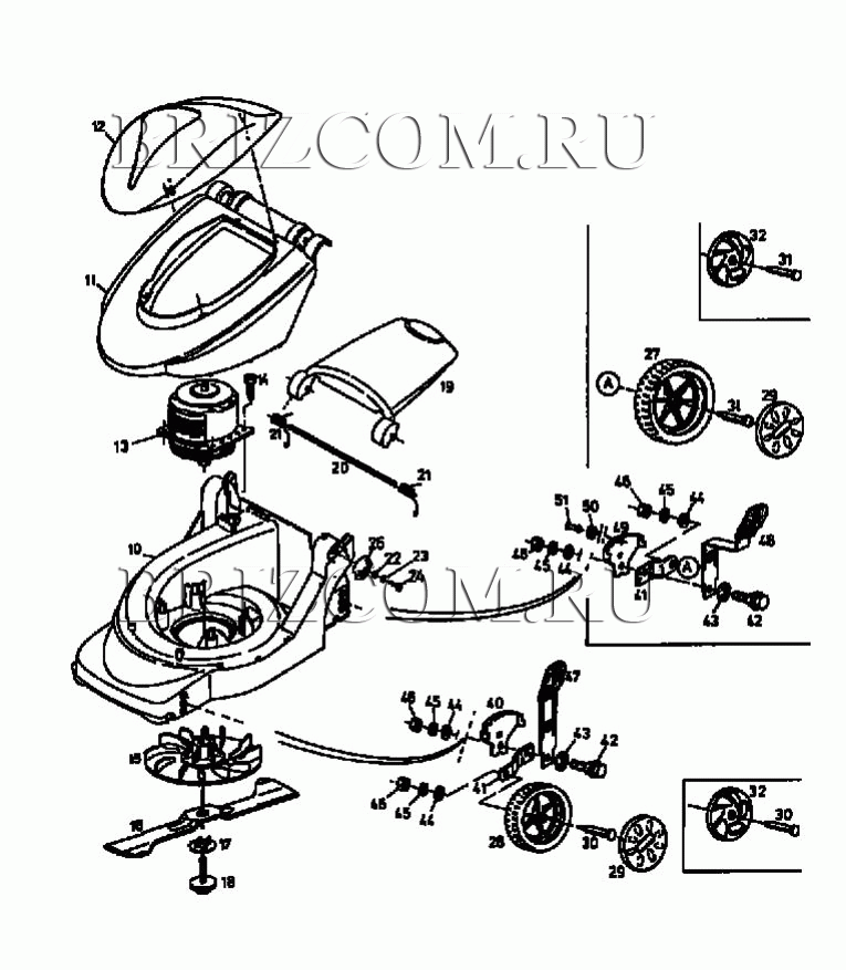 Электромотор, ножи, колеса МТД E 38 Z 18A-G4F-678 (1998)