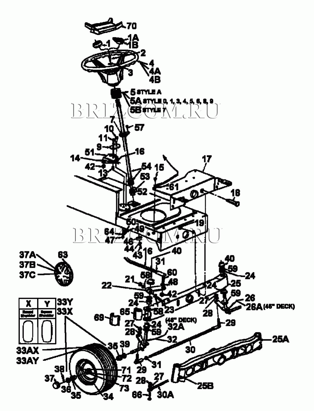 Передняя ось МТД H 130 13AA695F678 (1998), взрыв-схема: