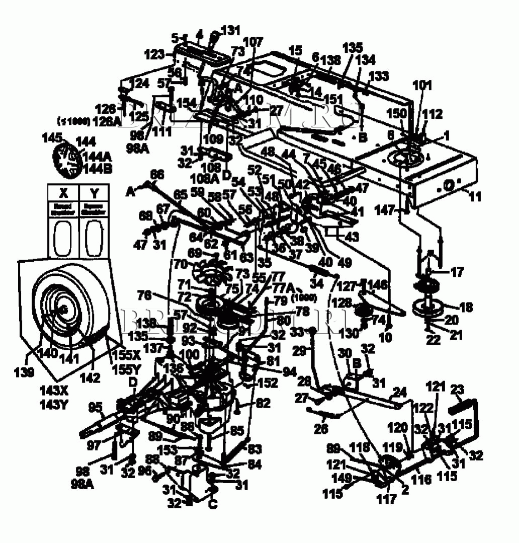 Система привода, шкив двигателя, педали, задние колеса МТД H 130 13AA695F678 (1998)
