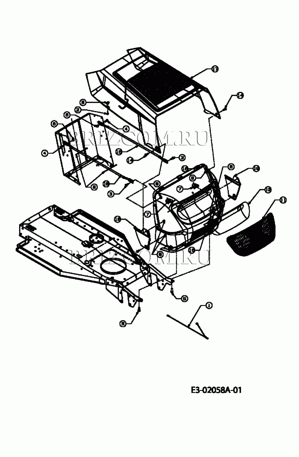 Капот 2-Style МТД RH 155/92 T 13D3452E600 (2004), взрыв-схема: