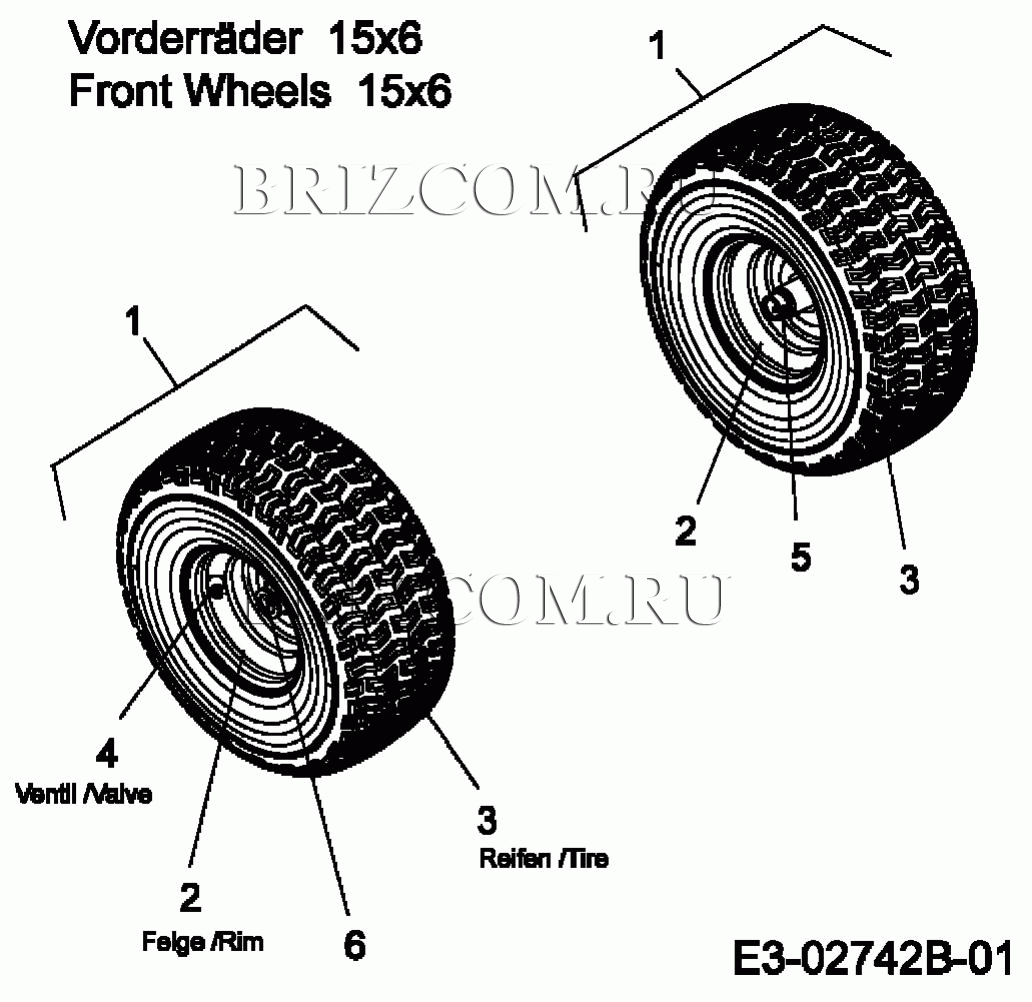 Передние колеса 15x6 МТД SL 135 BS 13AH768F676 (2007), взрыв-схема: