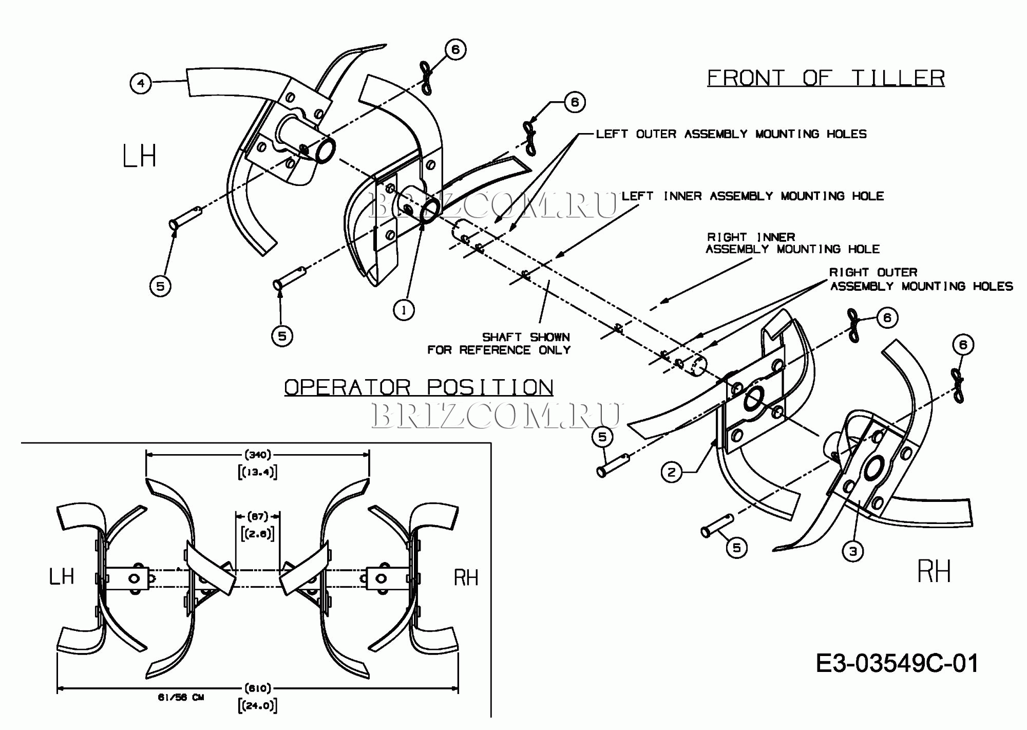 Нож фрезы культиватора МТД T/330 M 21C-33MV678 (2009), взрыв-схема: