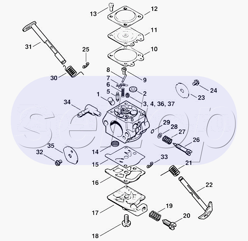 Карбюратор 023L WT-360, WT-396 STIHL 023, взрыв-схема: